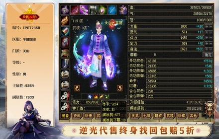 【TPE77458】 | 等级:119 | 主属性:5264 | 副属性:1500 | 畅游账号 | 天山 | 男 | 主冰攻 | VIP5