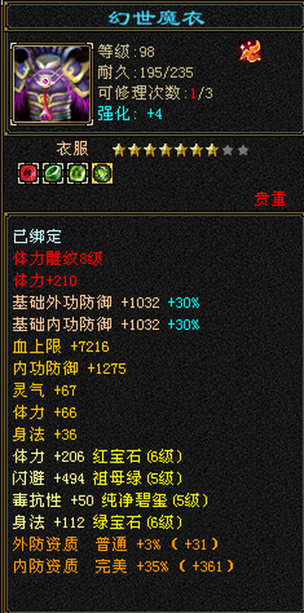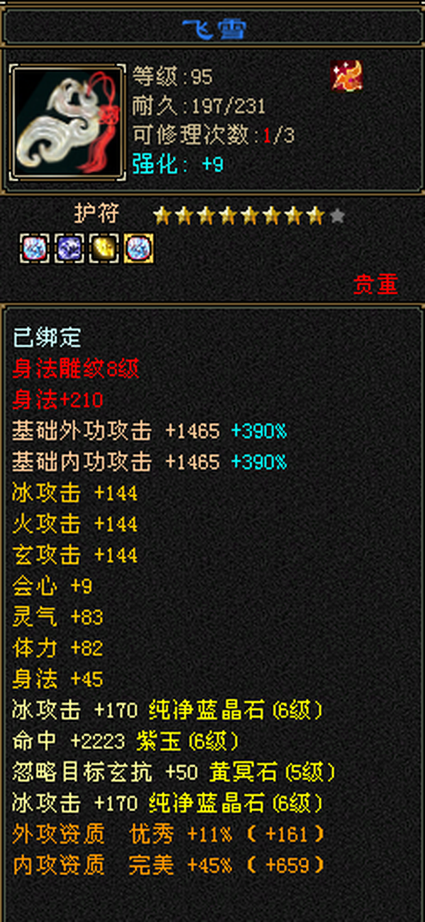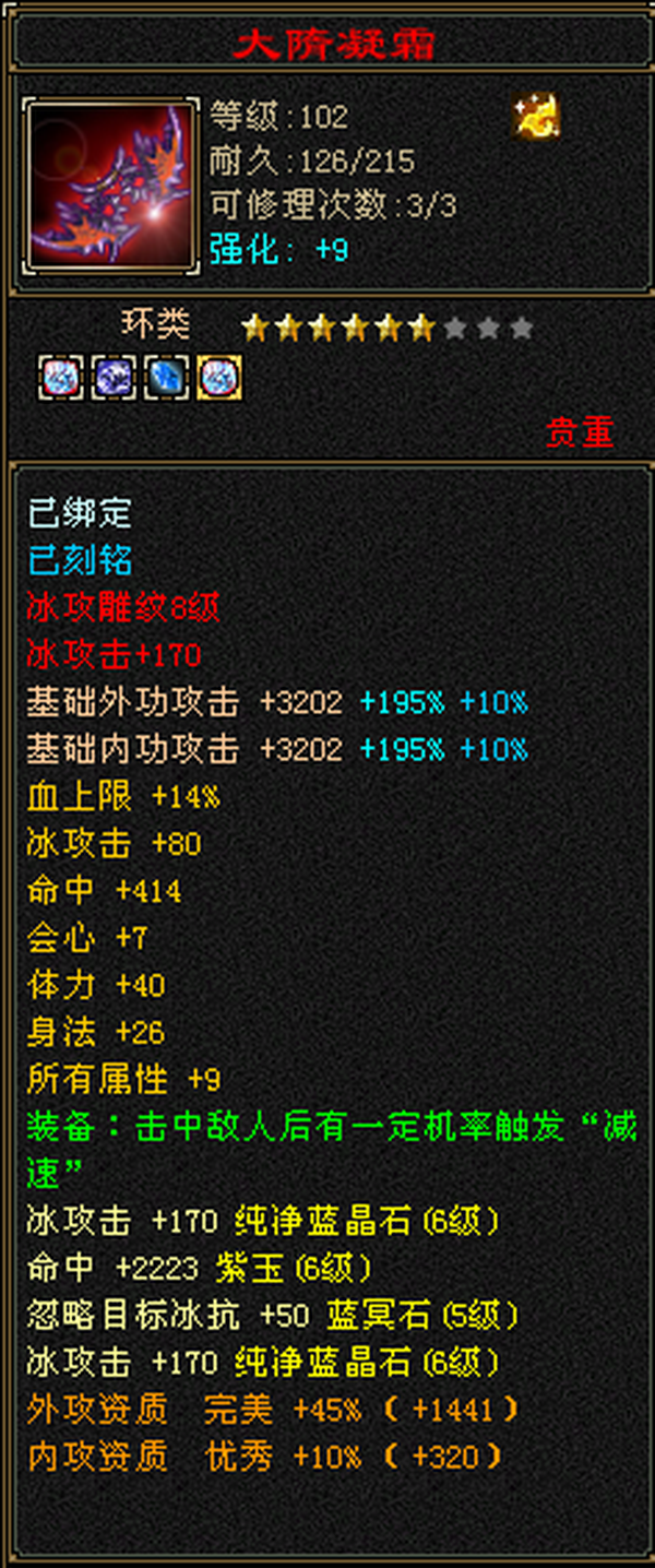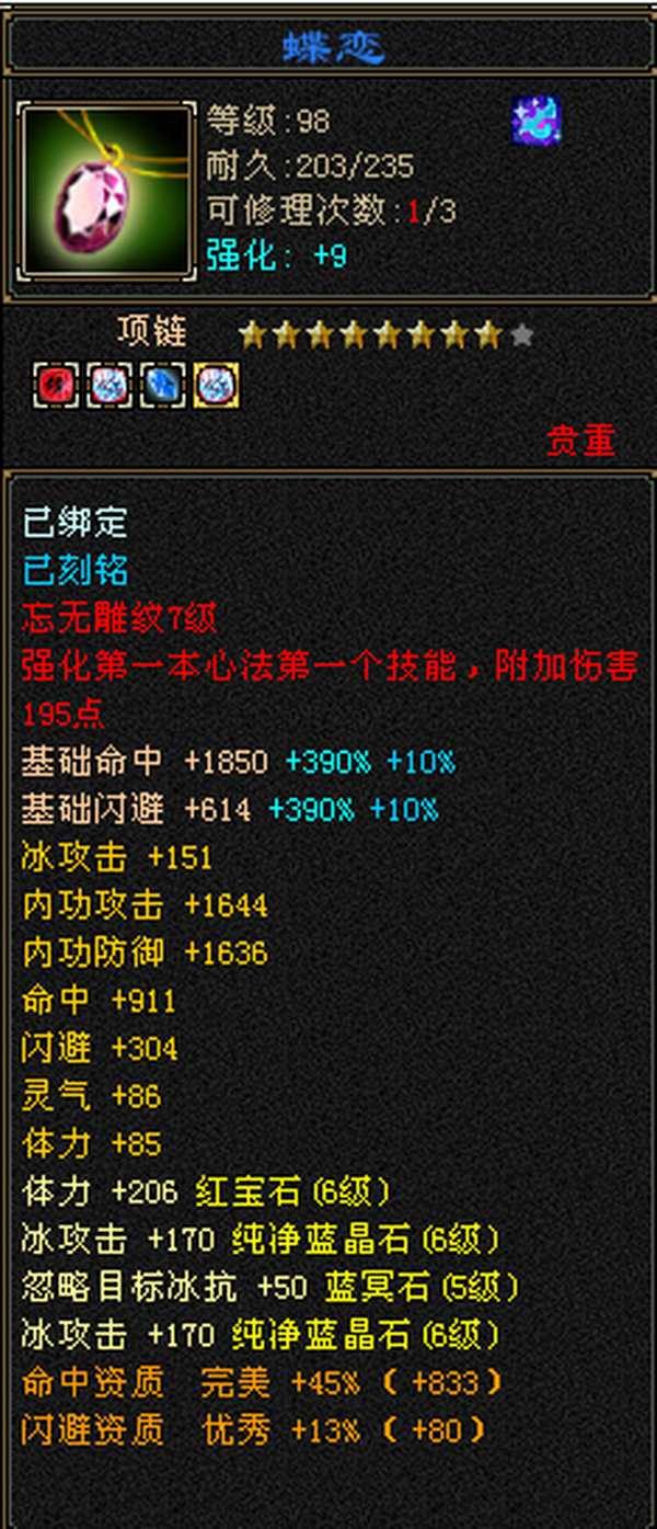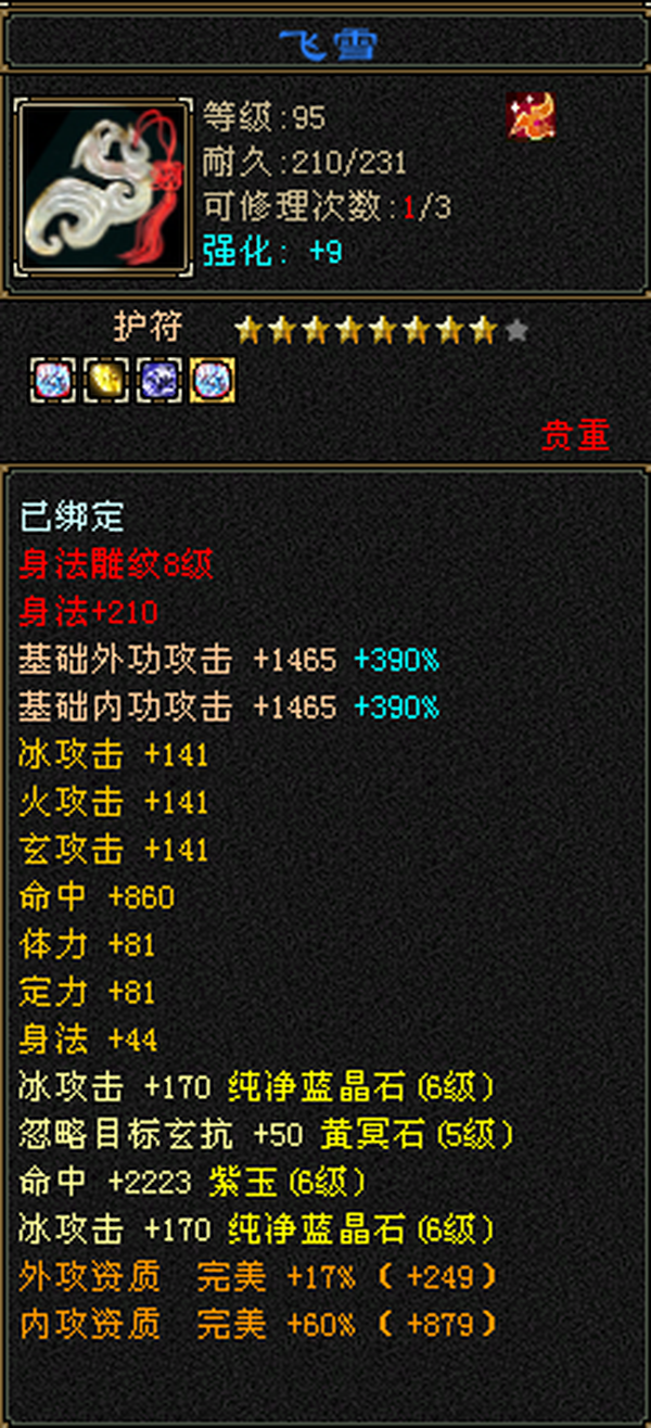 【一刀推荐】满6三修8雕,杂减装备豪华,高伤害天山!背包里还有4颗5减抗.纯暴力打手!可转武当,4W4内功!(找一刀!砍价大刀别来)