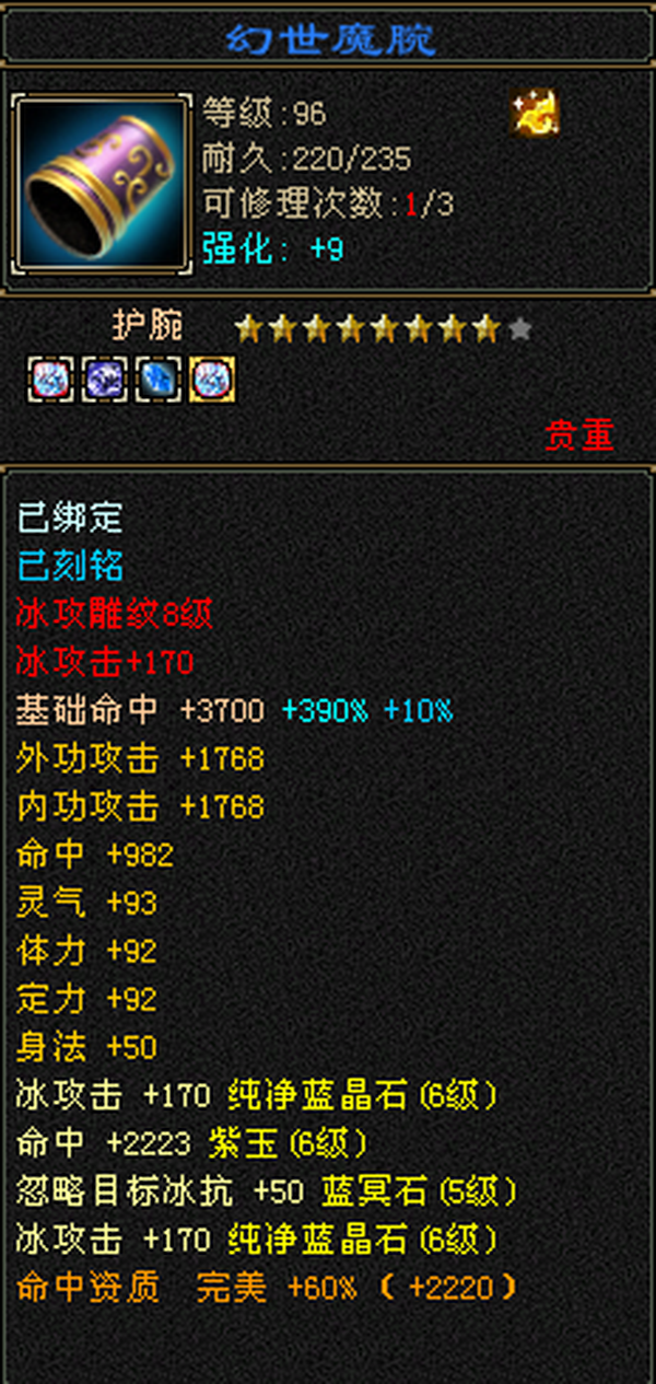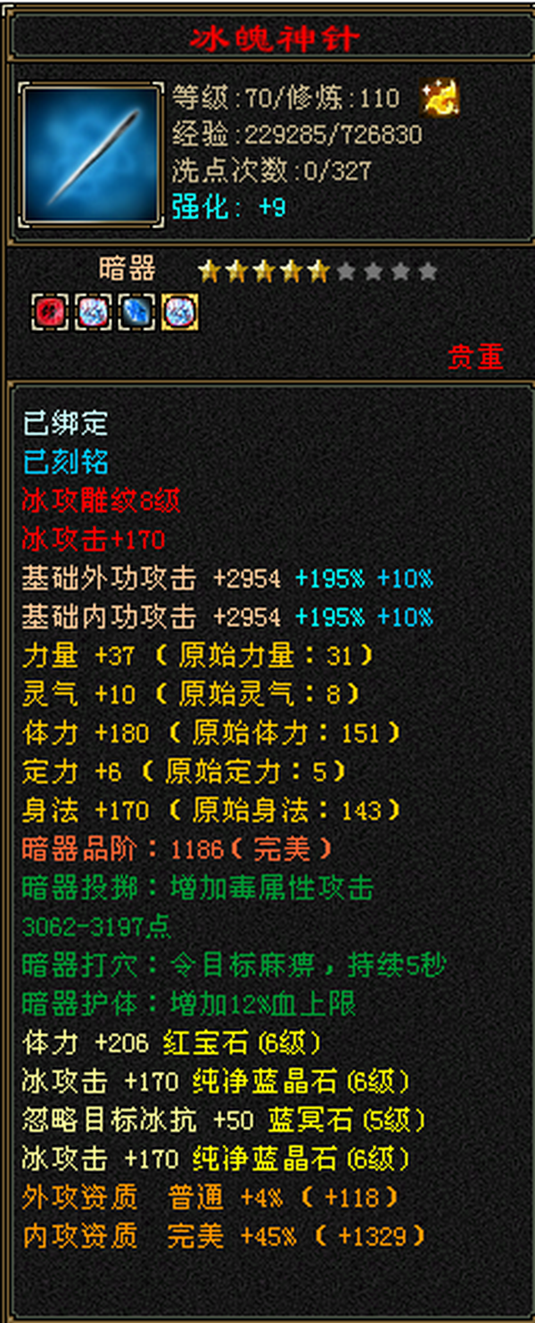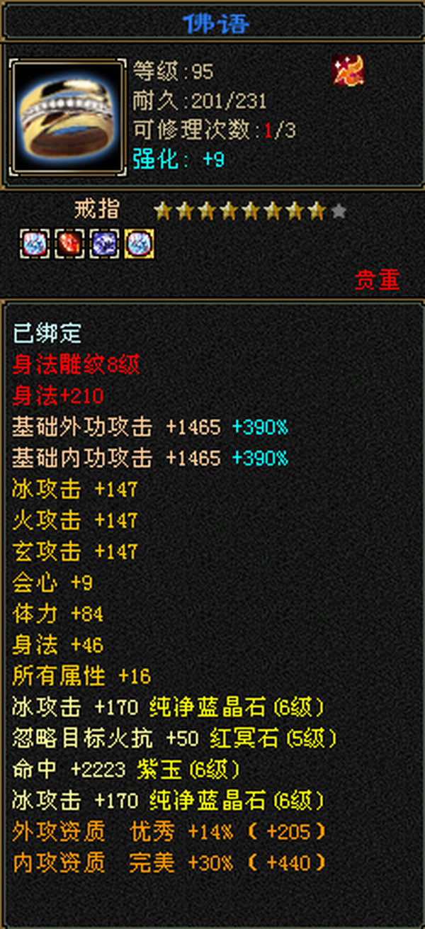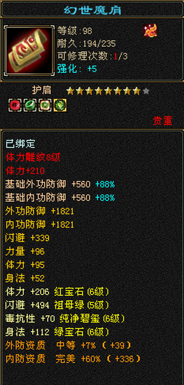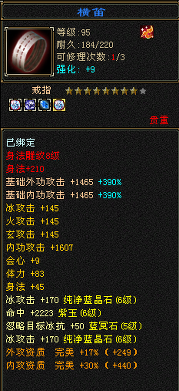 【一刀推荐】满6三修8雕,杂减装备豪华,高伤害天山!背包里还有4颗5减抗.纯暴力打手!可转武当,4W4内功!(找一刀!砍价大刀别来)