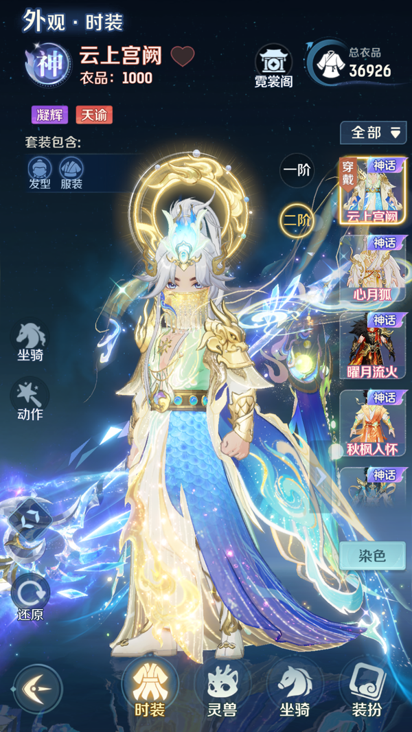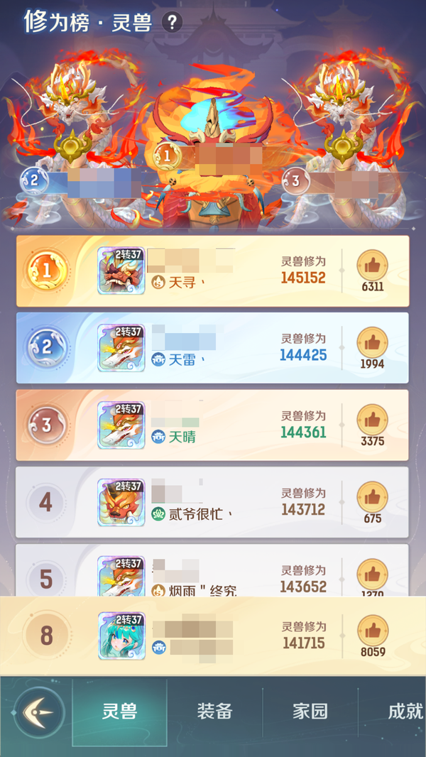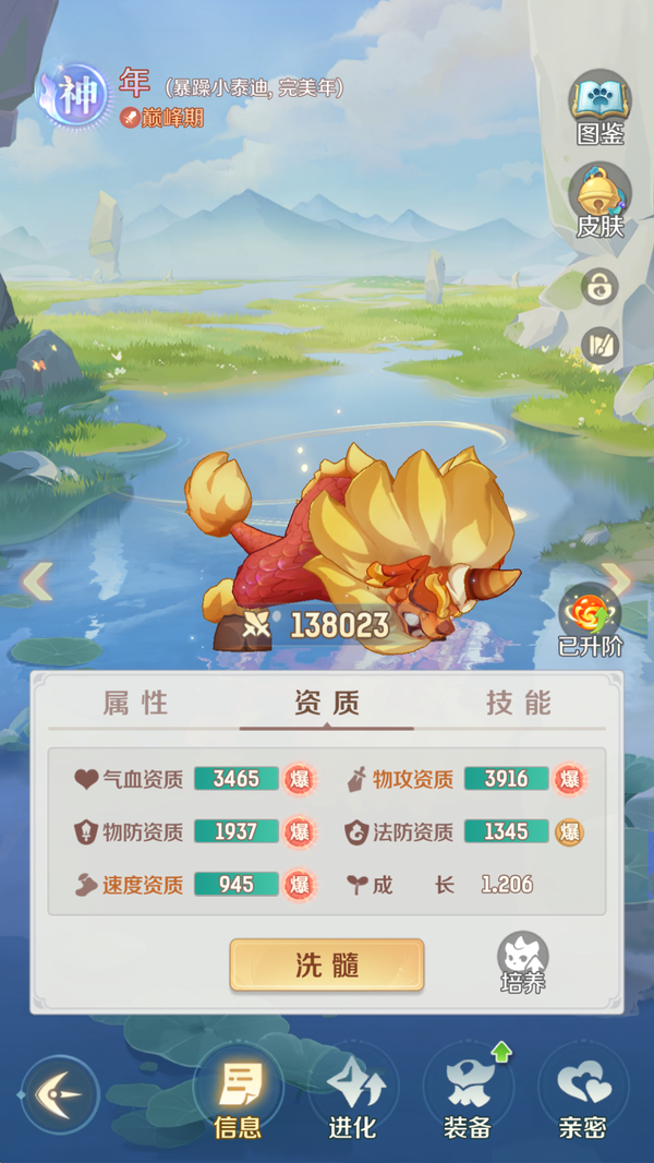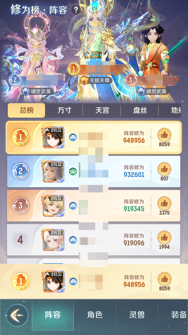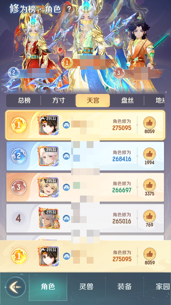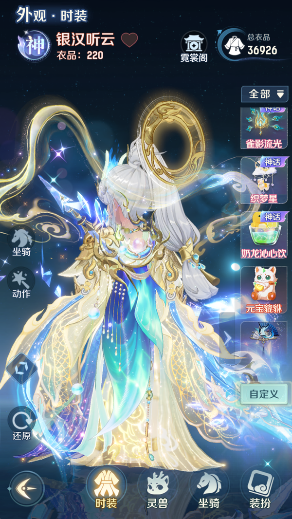全服顶氪天宫,4 珍惜完美觉醒全开格子,带 85 个碎片,第五只随时出,资源满满,还有 800 多万豆豆,时装坐骑全部拉满,装备毕业,一堆神兽,等等等等