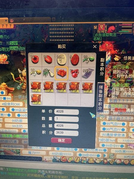 副本积分还在 1五庄4普陀。90➕60 全号每人一房 一炼兽笼。 全号副本积分都有3500左右 78号帮(1级 4金库)帮主号 天阵