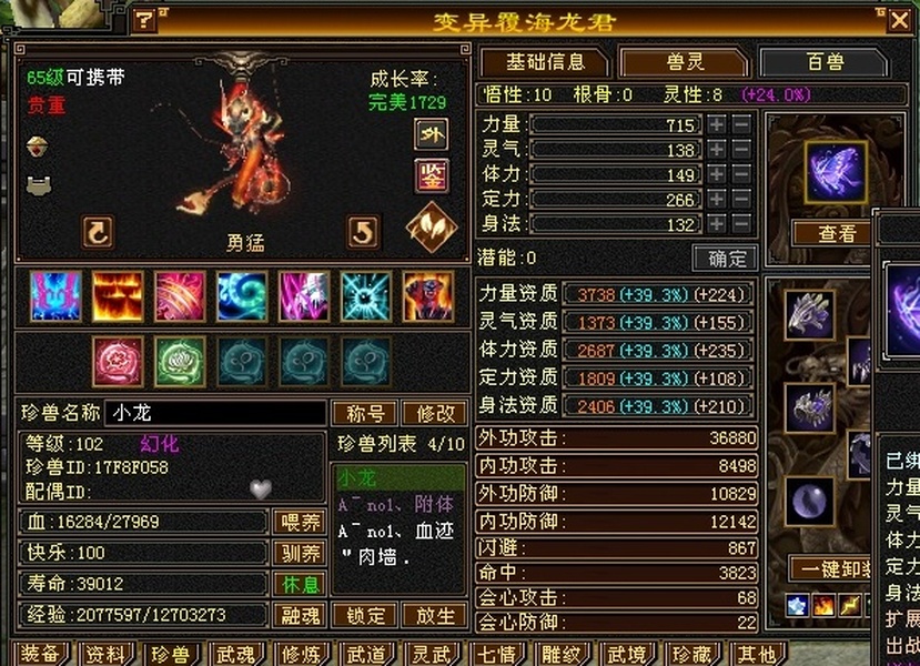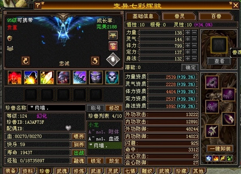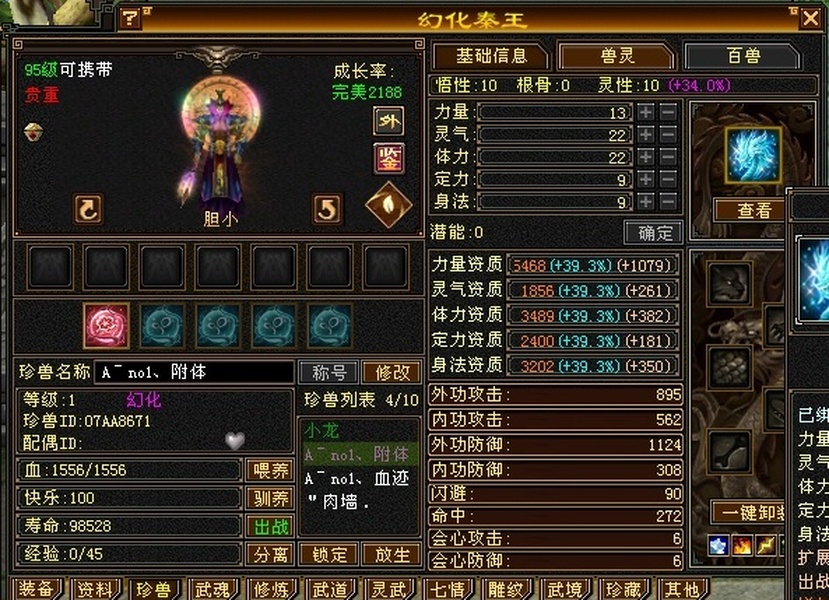 高性价比六级双减无敌丹天山,雕文7带8带附体肉墙宝宝。面板0状态。包里金币元宝正常用未必保留。