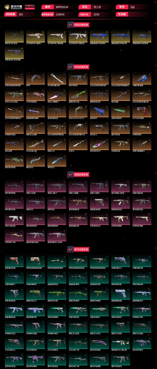 【WPF03134】 | 皮肤资产价值:118910 | 枪皮数量:179 | 刀皮数量:22 | 阿特拉斯指挥部甩棍,超限闪存匕首,2024全球冠军赛战刀,魄月玄刃,街机高手,剥皮小刀,超能偶像应援棒,奇点2.0蝴蝶刀,弧光异彩军刀,2022全球冠军赛蝴蝶刀,艾沃莉的魔法棒,侦察力量蝴蝶刀,珍珠棘贝短剑,夜刃诡镰,RGX11zPro3.0爪刀,神罚军刀,沙尘幻旅匕首,2021全球冠军赛爪刀,影钩,日耀风暴遗器,天玄刀,流星兵团短剑,钢轨卫士战锤 | 盖亚的复仇2.0幻影,神中神罚幻影,珍珠棘贝幻影,噬源兽防卫工程幻影,战术小伙伴幻影,源能者娱乐系统幻影,般若假面幻影,神圣领域幻影,末日之翼幻影,黯夜怪谈幻影,2022全球冠军赛幻影,2024全球冠军赛幻影,超限闪存幻影,日耀风暴幻影,聚合之力幻影,侦察力量幻影,悠闲猫生幻影,掠影2.0幻影 | 超能偶像狂徒,紫阙金琅狂徒,沙尘幻旅狂徒,离子武器2.0狂徒,堕天遗武狂徒,盖世英雄狂徒,混沌序曲狂徒,艾沃莉的梦之翼狂徒,RGX11zPro狂徒,流星兵团狂徒,弧光异彩狂徒,盖亚的复仇狂徒,阿特拉斯指挥部狂徒,2021全球冠军赛狂徒,海洋之星狂徒,诡秘蛇影狂徒,钢轨卫士狂徒,塑水宗狂徒,归零者狂徒,超时空卫队狂徒,魄月玄兔狂徒,掠影狂徒 | 奇点正义,沙尘幻旅正义,超限闪存正义,日耀风暴正义,复古浪潮正义,月球哨兵正义,纤云弄巧正义,太空穿梭正义 | 模拟赫兹鬼魅,天界神兵鬼魅,艾沃莉的梦之翼鬼魅,魄月玄兔鬼魅,掠影2.0鬼魅,胡桃狂想鬼魅,甜蜜战术鬼魅,采蜜小蜂队鬼魅,光导纤维鬼魅,源能者娱乐系统鬼魅,流星兵团鬼魅,信手涂鸦鬼魅 | 堕天遗武冥驹,归零者冥驹,甜蜜战术冥驹,偃月苍龙冥驹,胡桃狂想冥驹,源能者娱乐系统冥驹,千灵华绽冥驹,模拟赫兹冥驹,复古浪潮冥驹 | 战术小伙伴奥丁,日耀风暴奥丁,流星兵团奥丁,掠影2.0奥丁,信手涂鸦奥丁,艾沃莉的梦之翼奥丁,末日之翼奥丁 | 彩梦之城戍卫,浮光跃金戍卫,天界神兵戍卫,掠影戍卫,太空穿梭戍卫,折光棱晶戍卫,萌彩剪影戍卫,战术熊与伙伴们戍卫,钢轨卫士戍卫,甜蜜战术戍卫,珍珠棘贝戍卫,超能偶像戍卫 | 复古浪潮獠犬,采蜜小蜂队獠犬,悠闲猫生獠犬,幻语魔咒獠犬,模拟赫兹獠犬,弧光异彩獠犬,胡桃狂想獠犬,战术小伙伴獠犬,源能者娱乐系统獠犬 | 月球哨兵莽侠,超限闪存莽侠,神中神罚莽侠,纤云弄巧莽侠,深海水族莽侠,阿特拉斯指挥部莽侠,诡秘蛇影莽侠 | 诡秘蛇影判官,采蜜小蜂队判官,太空穿梭判官,甜蜜战术判官,萌彩剪影判官,超能偶像判官 | 流星兵团骇灵,珍珠棘贝骇灵,信手涂鸦骇灵,沙尘幻旅骇灵,光导纤维骇灵,塑水宗骇灵,日耀风暴骇灵,阿特拉斯指挥部骇灵,浮光跃金骇灵,魄月玄兔骇灵,星云暗涌骇灵,掠影2.0骇灵 | 深海水族蜂刺,天界神兵蜂刺,星云暗涌蜂刺,纤云弄巧蜂刺,折光棱晶蜂刺,弧光异彩蜂刺,聚合之力蜂刺,胡桃狂想蜂刺,战术小伙伴蜂刺,超限闪存蜂刺 | 般若假面短炮,末日之翼短炮,弧光异彩短炮,悠闲猫生短炮,深海水族短炮,钢轨卫士短炮,纤云弄巧短炮 | 奇点战神,深海水族战神,神圣领域战神,浮光跃金战神,采蜜小蜂队战神,太空穿梭战神,萌彩剪影战神 | 末日之翼飞将,信手涂鸦飞将,幻语魔咒飞将,沙尘幻旅飞将,天界神兵飞将,魄月玄兔飞将,悠闲猫生飞将,战术熊与伙伴们飞将,聚合之力飞将,光导纤维飞将 | 幻语魔咒雄鹿,模拟赫兹雄鹿,彩梦之城雄鹿,复古浪潮雄鹿,月球哨兵雄鹿 | 萌彩剪影狂怒,幻语魔咒狂怒,珍珠棘贝狂怒,战术熊与伙伴们狂怒,聚合之力狂怒,钢轨卫士狂怒,神圣领域狂怒 | 【买号找回永久包赔】