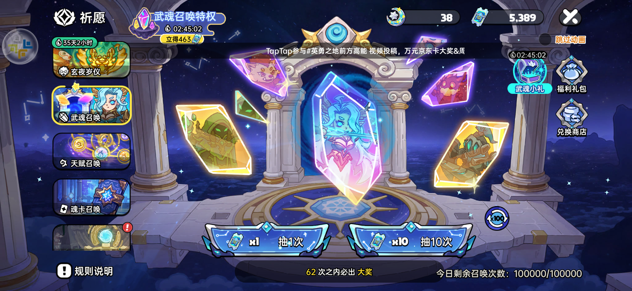 永久卡 满新神器 两张魂卡满 还有三个沙漏 下个赛季新魂卡出来稍微肝一肝可以直接拉满三张 有魂卡特权和天赋特权 还有四千多祈愿和五千多武魂券 女武神和道士双6 大雷球满 主流武器全有。从去年七八月一直肝到现在每天都上号玩 进度是一直跟上的