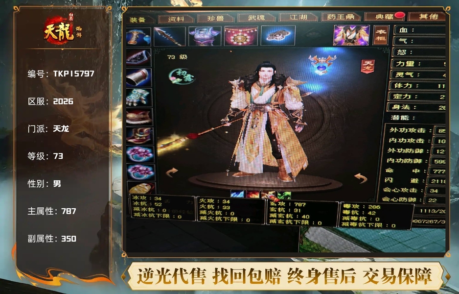 极品胚子号!刚玩六天玩不明白,上元礼包和战令都开了,重楼肩都没领,穿60套10w血,肩膀体雕已上,仓库还有两本雕文可以助边,少泽剑已开秘籍也买了
