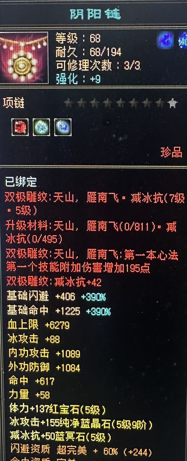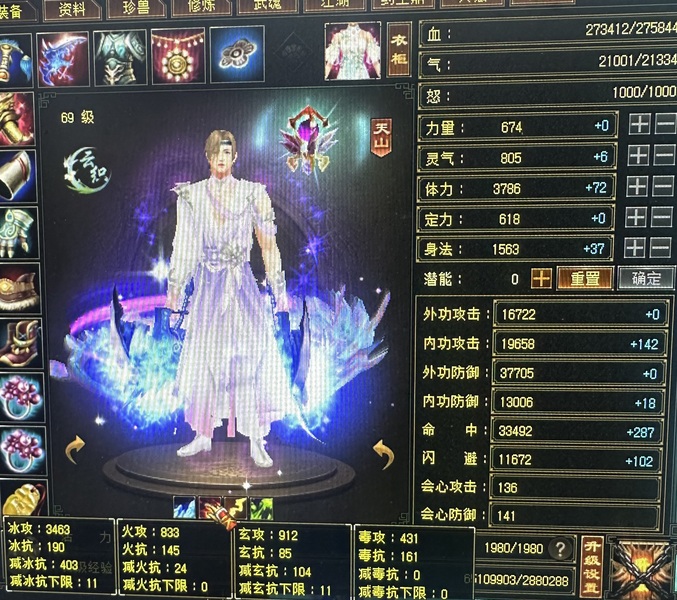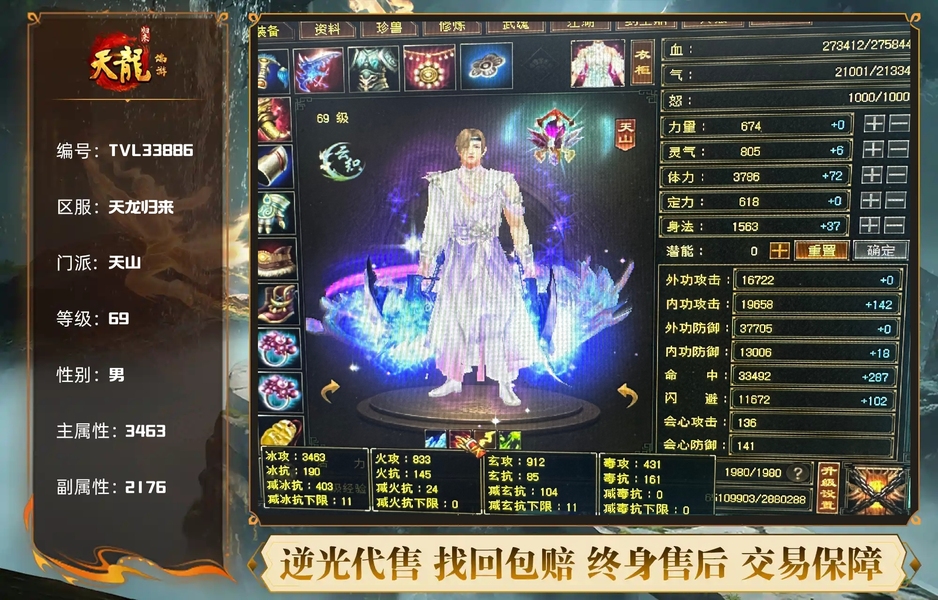 【TVL33886】 | 天山 | 等级:69 | 主属性:3463 | 副属性:2176 | 男 | 主冰攻