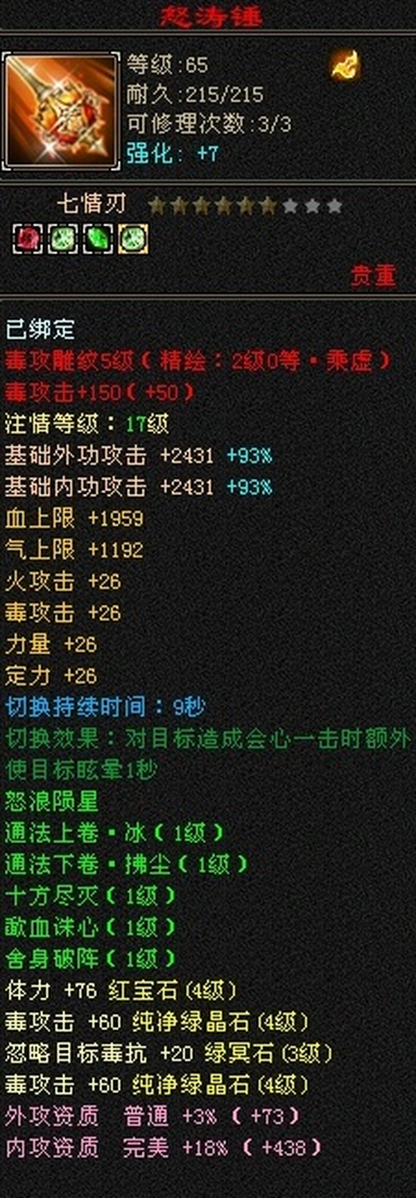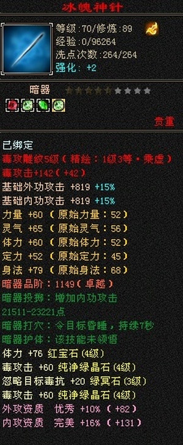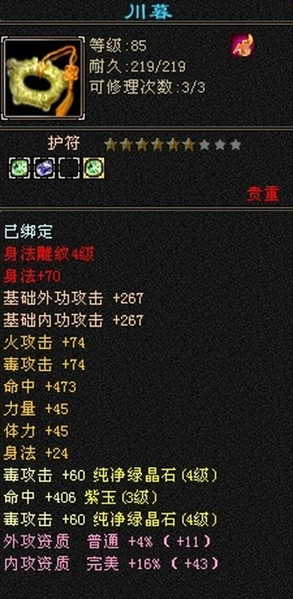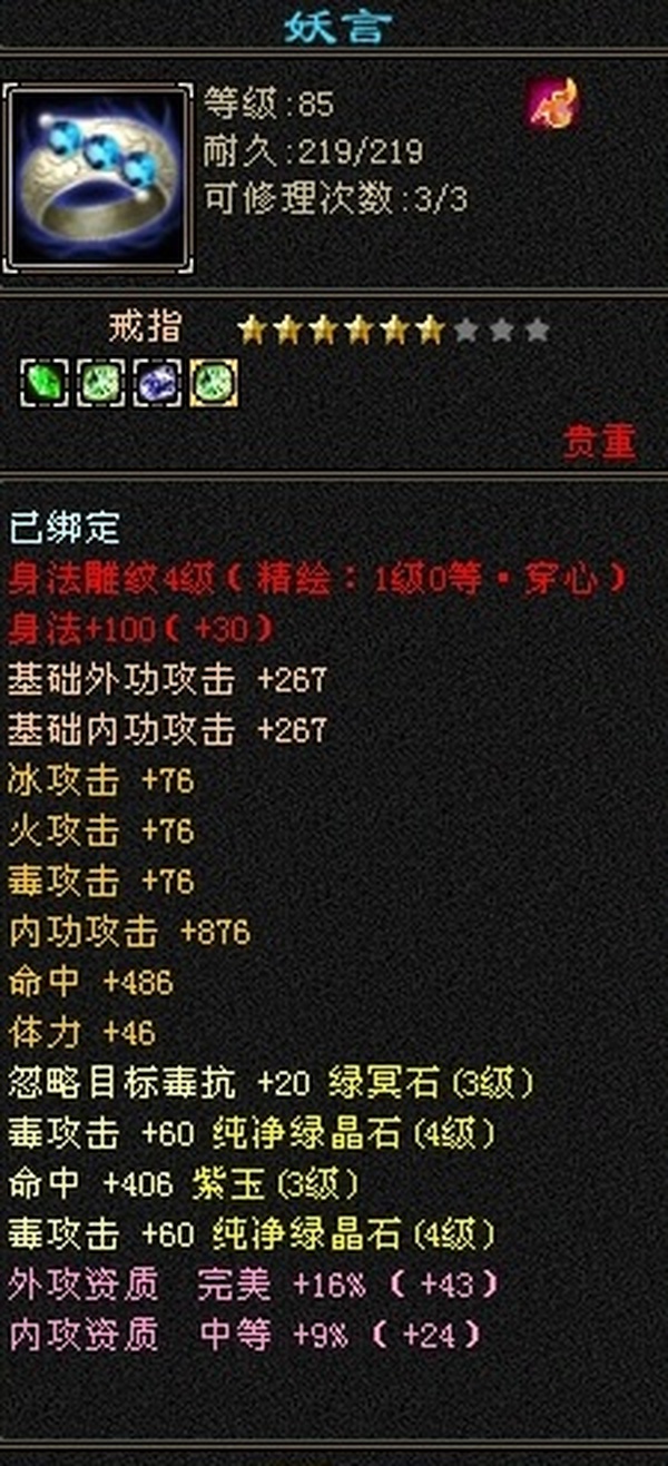 外观:冰夷裳和冰河 属性:3000毒600火.