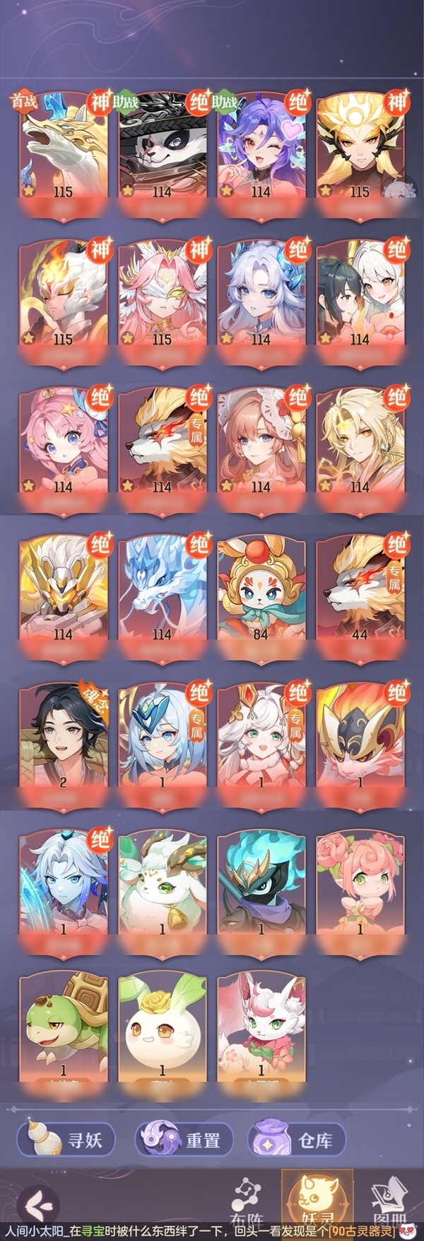 【CKA52012】 | 颜值:18648 | 等级:109 | 弈剑 | 神兽数:4 | 法宝颜色统计:10红0蓝 | 总评分:439711 | 角色评分:97932 | 妖灵评分:223185 | 灵师评分:118594 | 倾天四 | 淬金曜蚀,织梦星海,乘波踏浪,山君现,清寒羽冽,灵鸢一梦,墨染尘烟,星河揽月,离火苍龙,九春韶华,玉兔月赏,火树银花,哈?我当武器?,碎梦语情,炙烤大串,一刹雷鸣 | 蝶恋芳菲 | 乌蹄·照夜,太一驴,嘟嘟雪橇,吾皇·萌骑,蟹有钳,钱多多,气球派对,灵华引,万海真君,罗帷七香车,浪起来,定乾坤·凌云,负山海,跃龙门,绵绵云,鸭与云游,喵小萌,飞龙在天,红莲·出尘,风火乾坤,海月璃梦,贯日神君,通明心剑,焚天火凤,花将军,招财进喵,初弦瑶桂,乘风入梦,狐心入梦,风驰电掣,踏火焚夜,凤蝶·梦浮生,柯冲冲 | 【买号找回永久包赔】