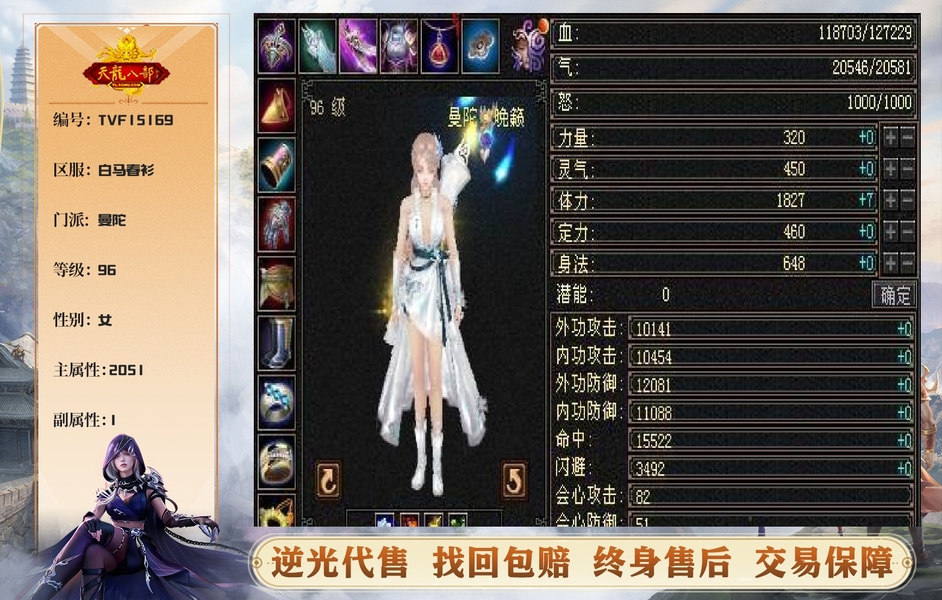 【TVF15169】 | 曼陀 | 等级:96 | 主属性:2051 | 副属性:1 | 女 | 主玄攻 | VIP5 | 畅游账号