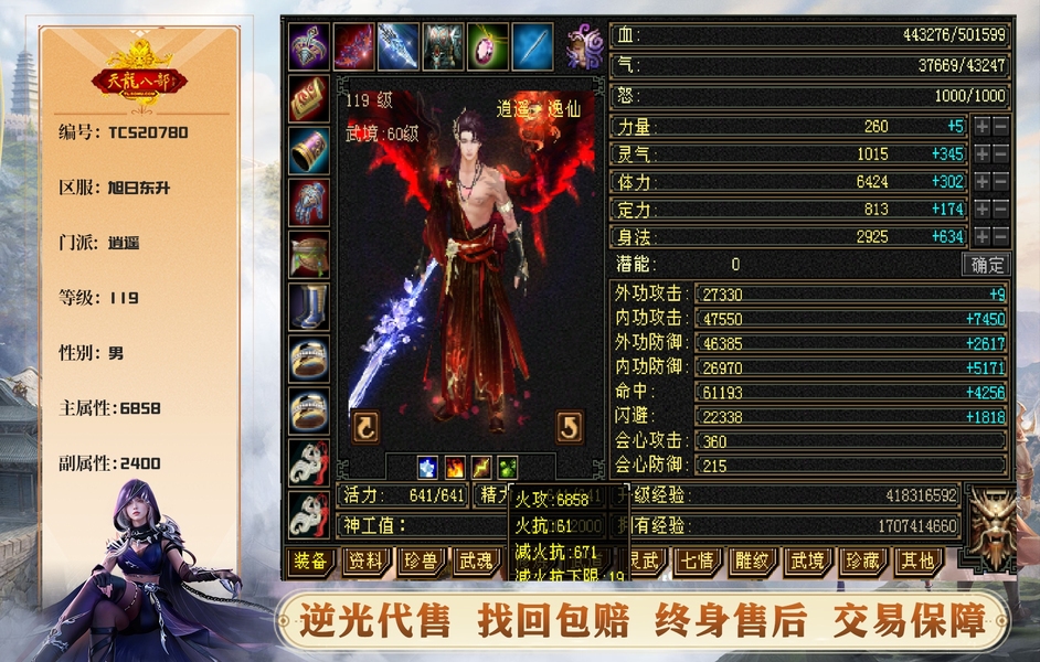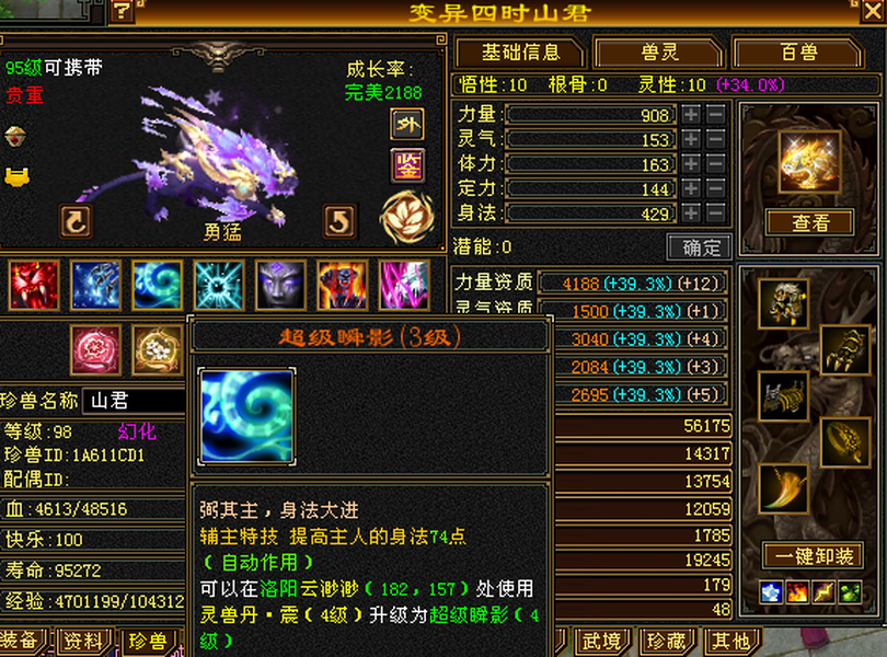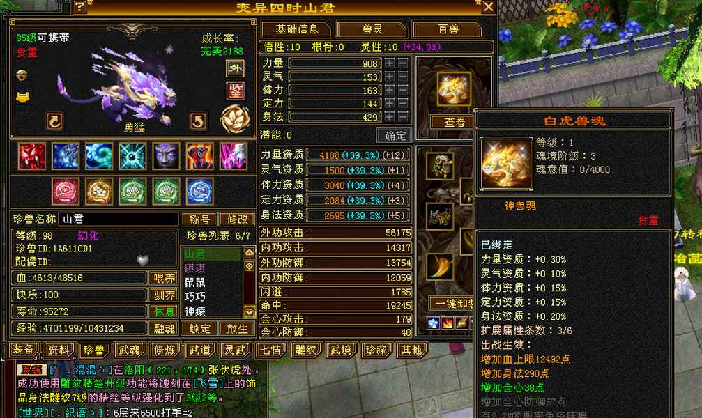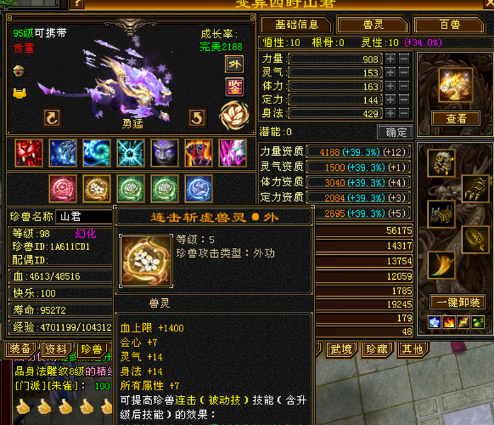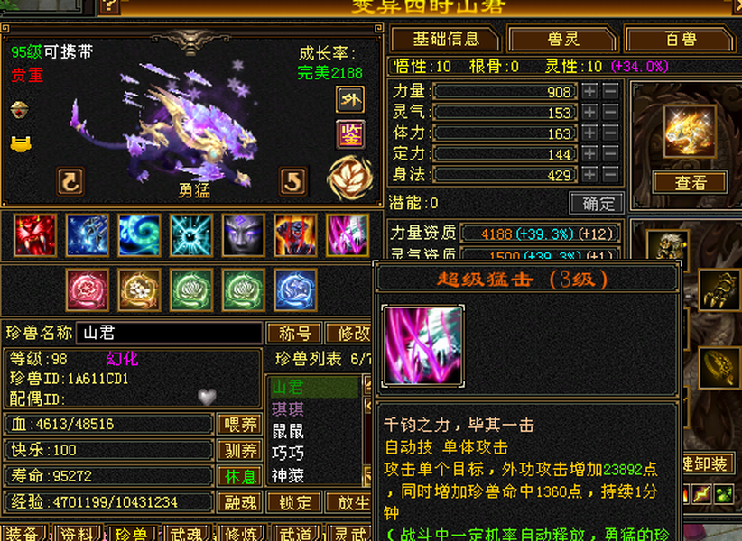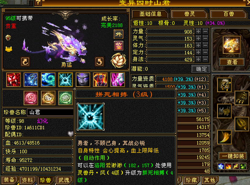带极品拼命10 新上完美词条拼命10 5555山君 饰品石头6656 防具石头全部六级 装备差了点后期提升空间很大 带雪猿坐骑 没时间玩了 带所有 主属性已破6900