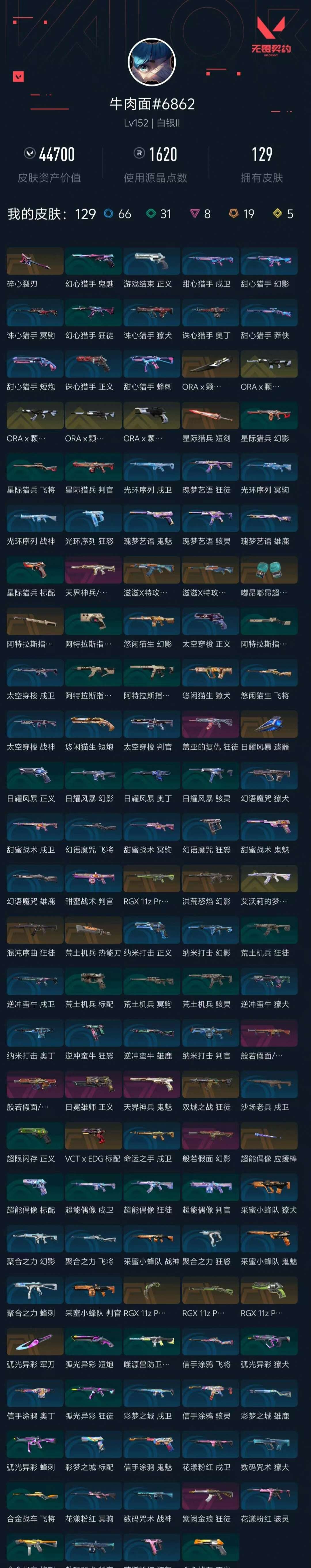 【WMT86982】 | 白银 | 皮肤资产价值:44700 | 枪皮数量:0 | 阿特拉斯指挥部甩棍,RGX11zPro3.0爪刀,荒土机兵热能刀,碎心裂刃,星际猎兵短剑,日耀风暴遗器,嘟昂嘟昂超弹力水球拳套,ORAx颗秒军刀,超能偶像应援棒,弧光异彩军刀 | 纳米打击幻影,噬源兽防卫工程幻影,聚合之力幻影,日耀风暴幻影,天界神兵2.0幻影,般若假面幻影,悠闲猫生幻影,洪荒怒焰幻影,ORAx颗秒幻影 | 弧光异彩狂徒,盖亚的复仇狂徒,ORAx颗秒狂徒,超能偶像狂徒,阿特拉斯指挥部狂徒,紫阙金琅狂徒,滋滋X特攻队狂徒,混沌序曲狂徒,艾沃莉的梦之翼狂徒,荒土机兵狂徒,双城之战狂徒 | 纳米打击正义,超限闪存正义,RGX11zPro3.0正义,日冕雄师正义,ORAx颗秒正义 | 星际猎兵标配,超能偶像标配,彩梦之城标配,VCTxEDG标配,阿特拉斯指挥部标配,荒土机兵标配 | 天界神兵鬼魅,甜蜜战术鬼魅,采蜜小蜂队鬼魅,信手涂鸦鬼魅 | 滋滋X特攻队冥驹,甜蜜战术冥驹,ORAx颗秒冥驹 | 日耀风暴奥丁,纳米打击奥丁 | 彩梦之城戍卫,逆冲蛮牛戍卫,太空穿梭戍卫,沙场老兵戍卫,命运之手戍卫,甜蜜战术戍卫,RGX11zPro戍卫,超能偶像戍卫 | 般若假面2.0獠犬,采蜜小蜂队獠犬,悠闲猫生獠犬,幻语魔咒獠犬 | RGX11zPro3.0莽侠,阿特拉斯指挥部莽侠 | 纳米打击判官,采蜜小蜂队判官,太空穿梭判官,甜蜜战术判官,超能偶像判官 | 信手涂鸦骇灵,阿特拉斯指挥部骇灵,荒土机兵骇灵 | 合金战车蜂刺,弧光异彩蜂刺,聚合之力蜂刺 | 弧光异彩短炮,悠闲猫生短炮 | 采蜜小蜂队战神,太空穿梭战神,般若假面2.0战神 | 信手涂鸦飞将,幻语魔咒飞将,悠闲猫生飞将,聚合之力飞将 | 瑰梦艺语雄鹿,幻语魔咒雄鹿,彩梦之城雄鹿,逆冲蛮牛雄鹿 | 幻语魔咒狂怒,聚合之力狂怒,逆冲蛮牛狂怒 | 【买号找回永久包赔】