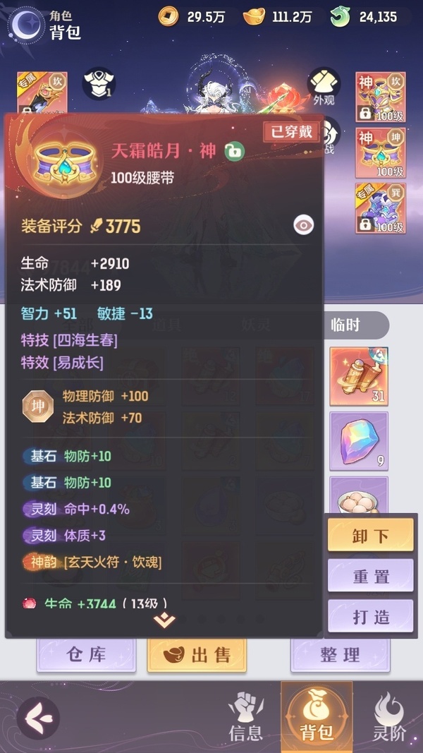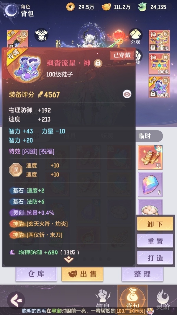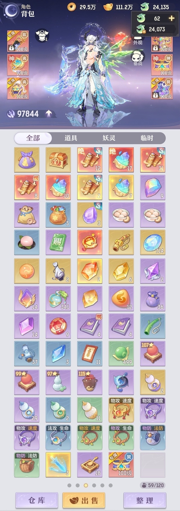 1.9万颜 典藏基本集齐,限定一套。新年最新典藏和光武都有了。朱焰评分230,还有2.4w玉。宝宝毕业。鬼将洗好了物攻速度双爆资质。仓库80多颗资质丹,可以做成品鬼将。也可以做新神兽踏岁。 2024半新区。可刀