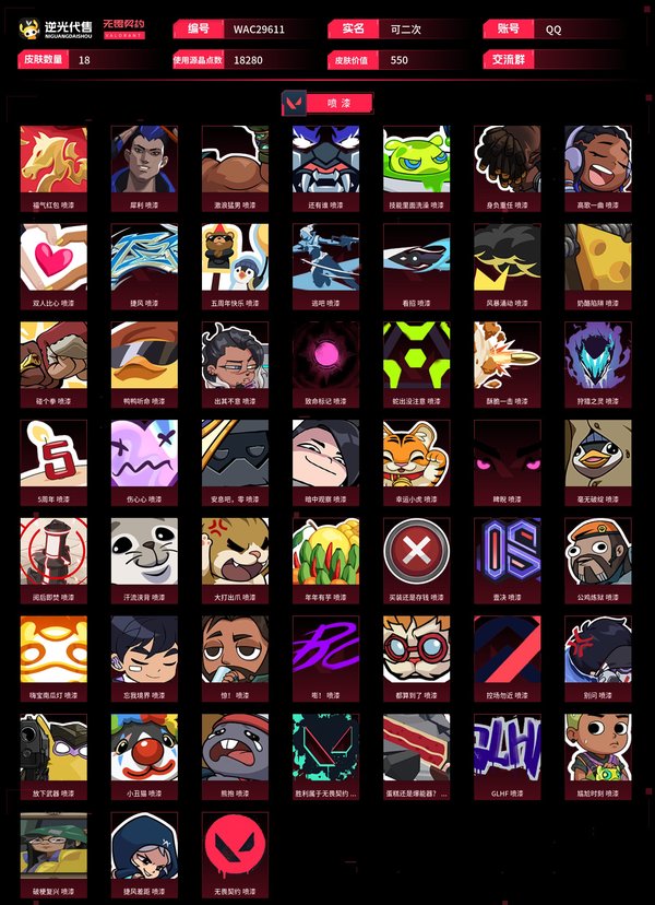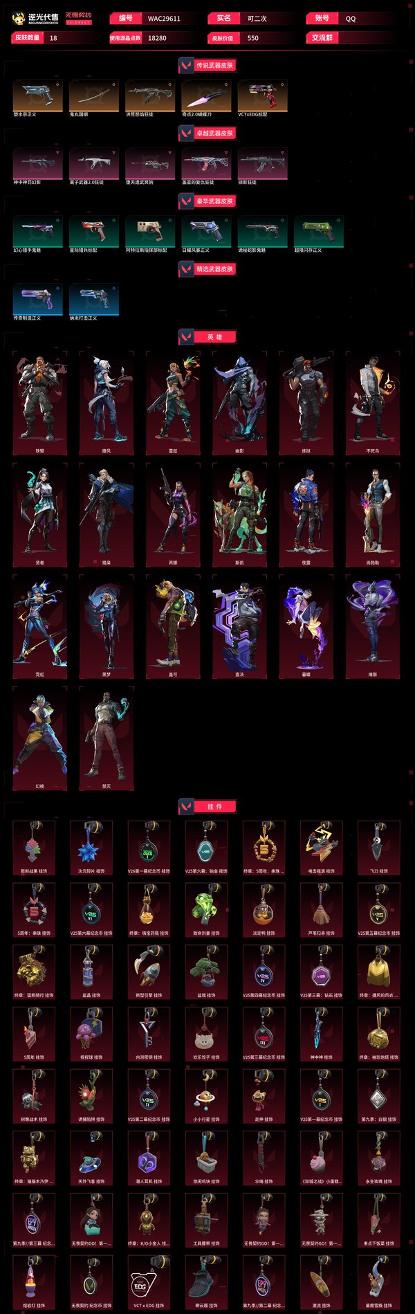 【WAC29611】 | 皮肤资产价值:18280 | 枪皮数量:16 | 刀皮数量:2 | 鬼丸国纲,奇点2.0蝴蝶刀 | 神中神罚幻影 | 盖亚的复仇狂徒,洪荒怒焰狂徒,离子武器2.0狂徒,掠影狂徒 | 塑水宗正义,纳米打击正义,超限闪存正义,日耀风暴正义,传奇制造正义 | 诡秘蛇影鬼魅,幻心猎手鬼魅 | 堕天遗武冥驹 | 【买号找回永久包赔】