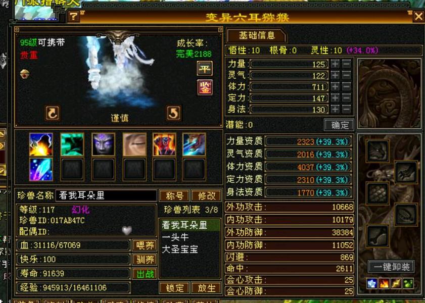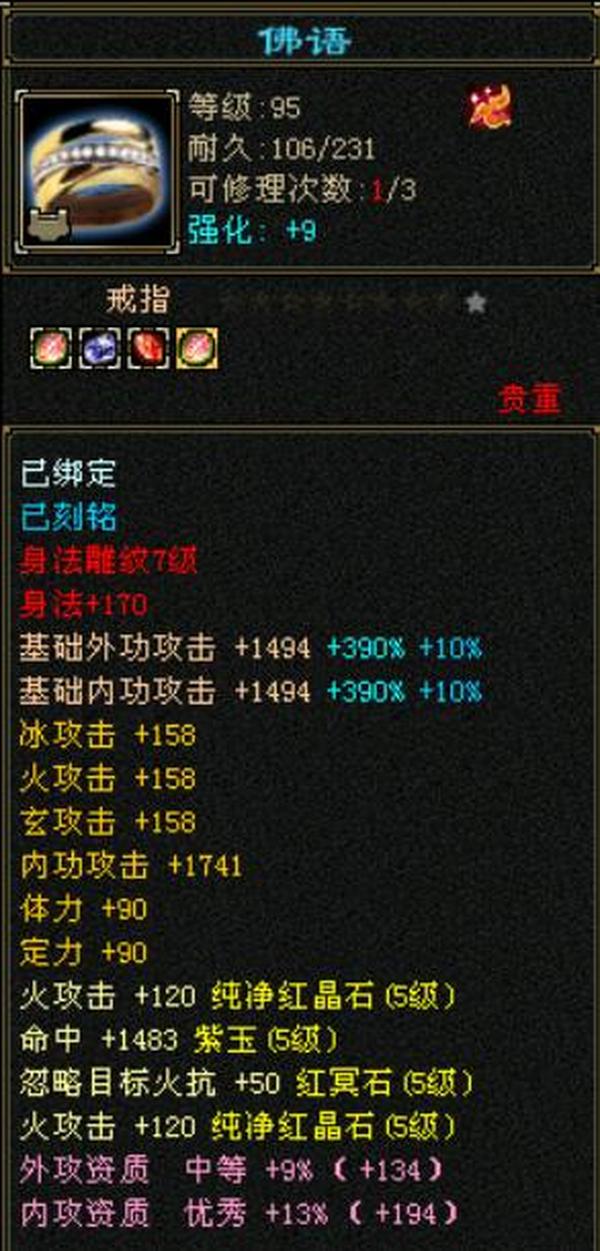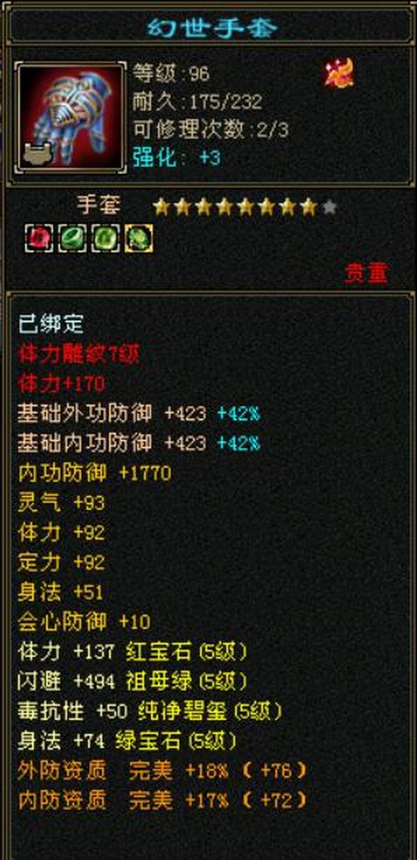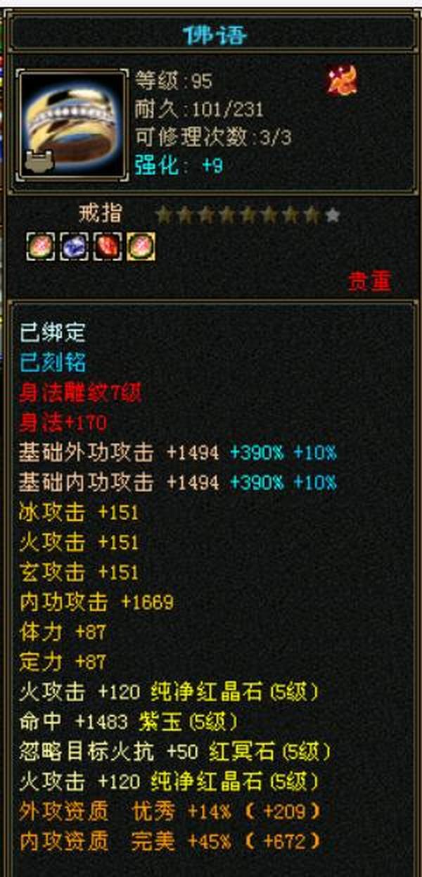 细节五级火武当 三修主属性3700 副属性1800 896大完美武魂下限19 内功五万没有一个猫眼 25万血,7雕文,心法除最后一本全一百修炼差点,坐骑雪猿,时装大裤衩5周年庆朔光 断桥残雪长庚仓库有宝石,带个谨慎猴子。平推怪5.7-6.5打人1-1.3裸面板无任何精华药 全是比较细了