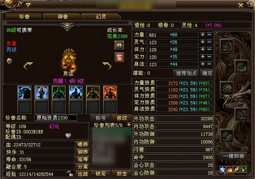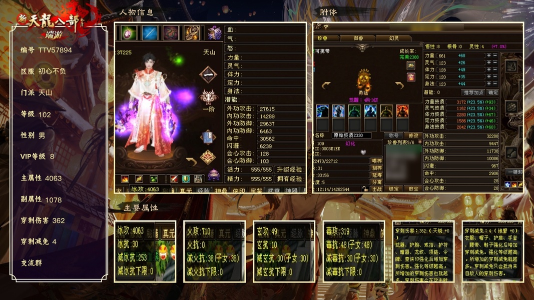 游戏v8 属性4100,23w血,多属性八星项链,小附体,单四鼎,子女三减,细节号,侠印材料宝石都留着包里了,回头兑换可以直接上4400属性,26万血,没时间玩,可以改格子,随时可以上架提供后八钱包密码,