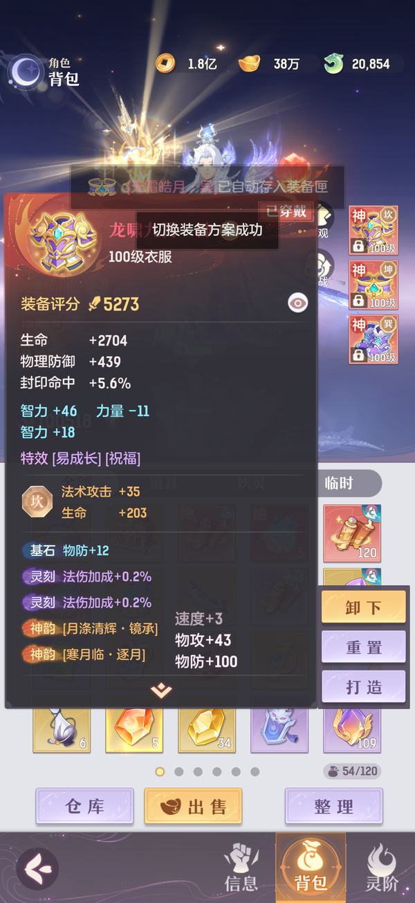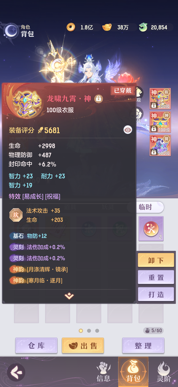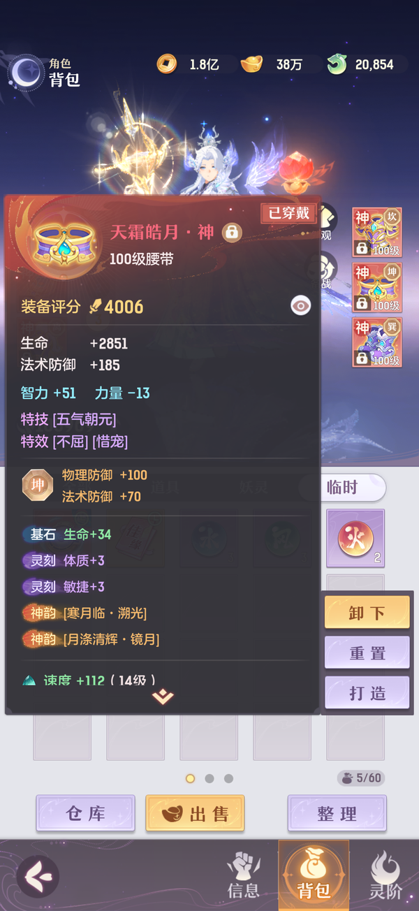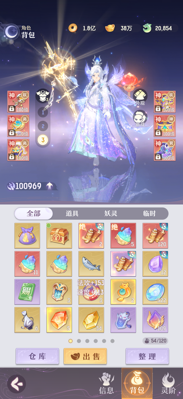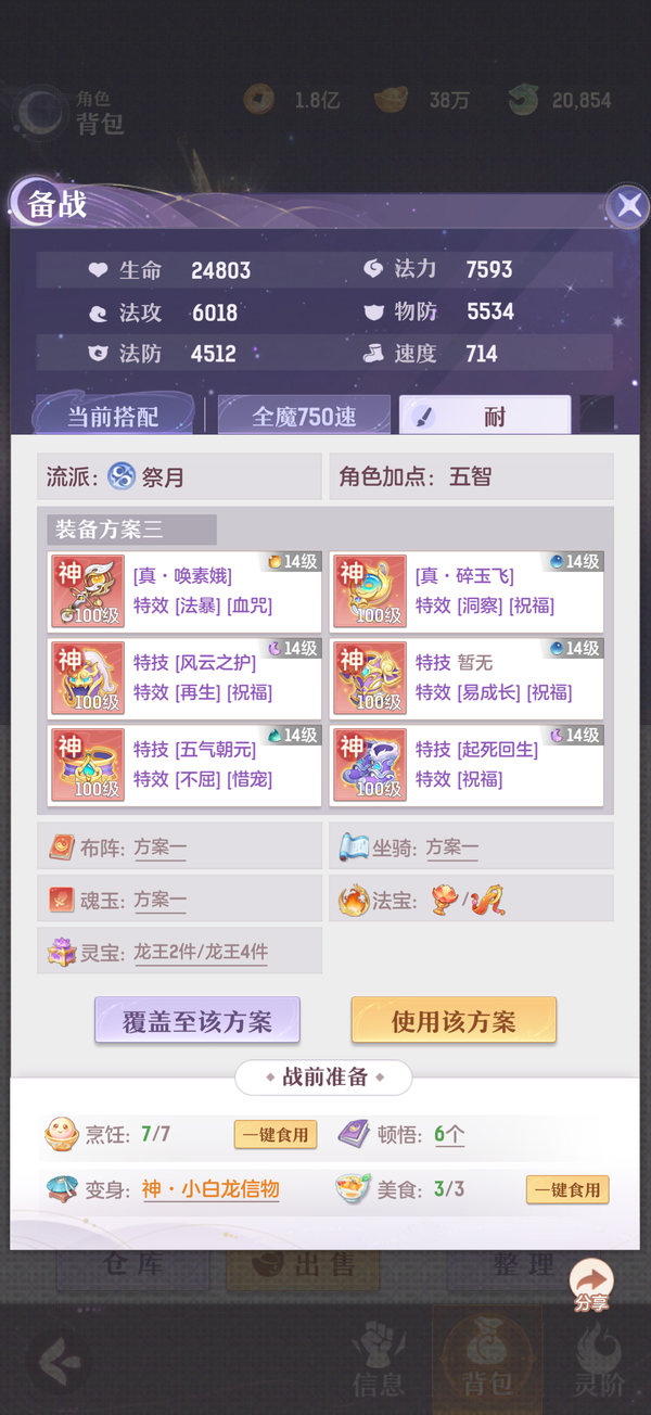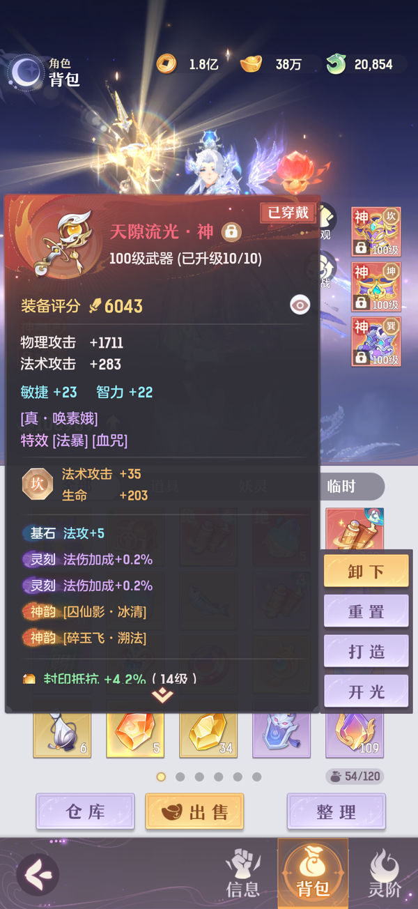 毕业双奢法,法伤洞察可6100+,极限法伤6300,多件毕业装备,两套宝石可高中低速度随便切换,灵宝18阶,天衍三绝,法宝毕业,魂玉超一线属性,一套无双法爆75智力一套无双猛击71智力,还有10块备用无双魂玉随时切换,宠物全部满丹满神韵5阶以上,宠物装备全特效,颜值区里排行15,有全套十巫外观,拍卖外观齐全,家园14级,还有2w活玉289通宝