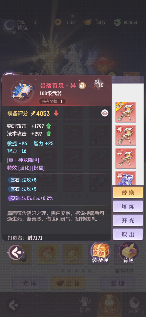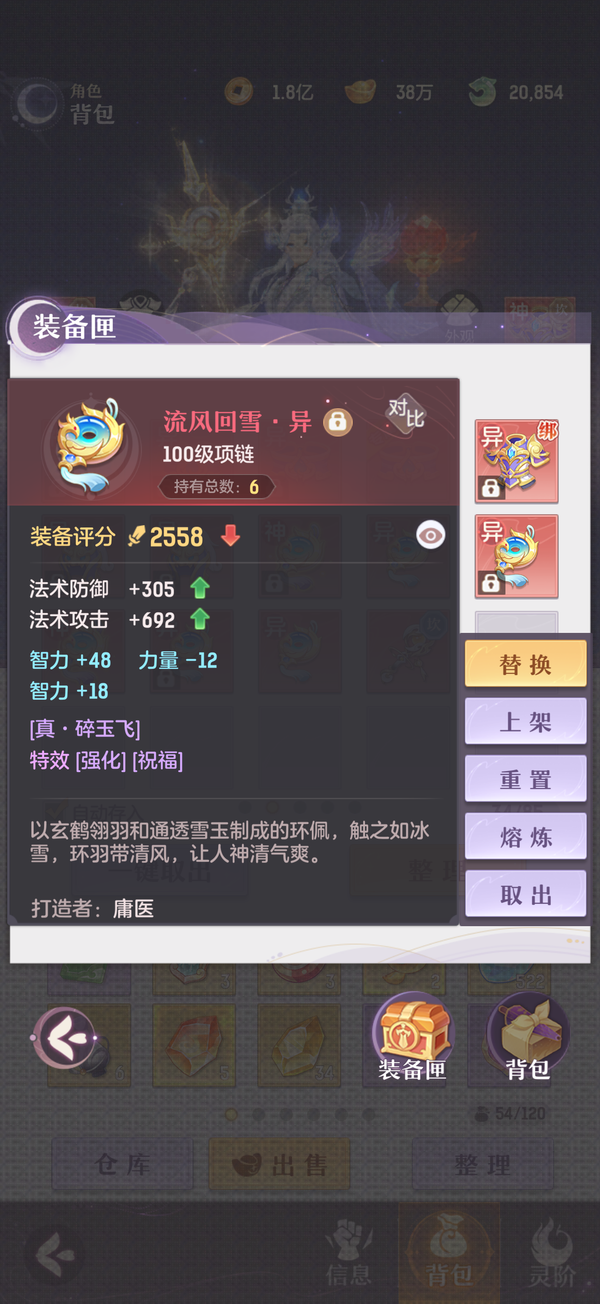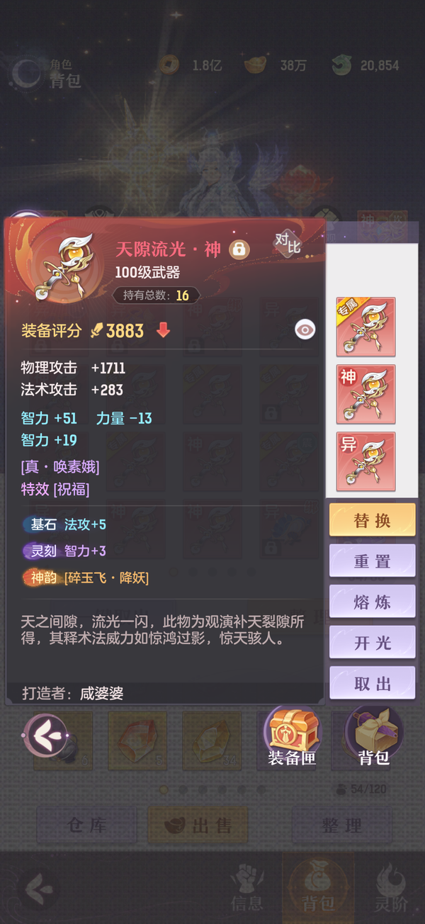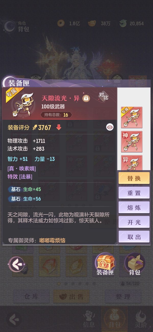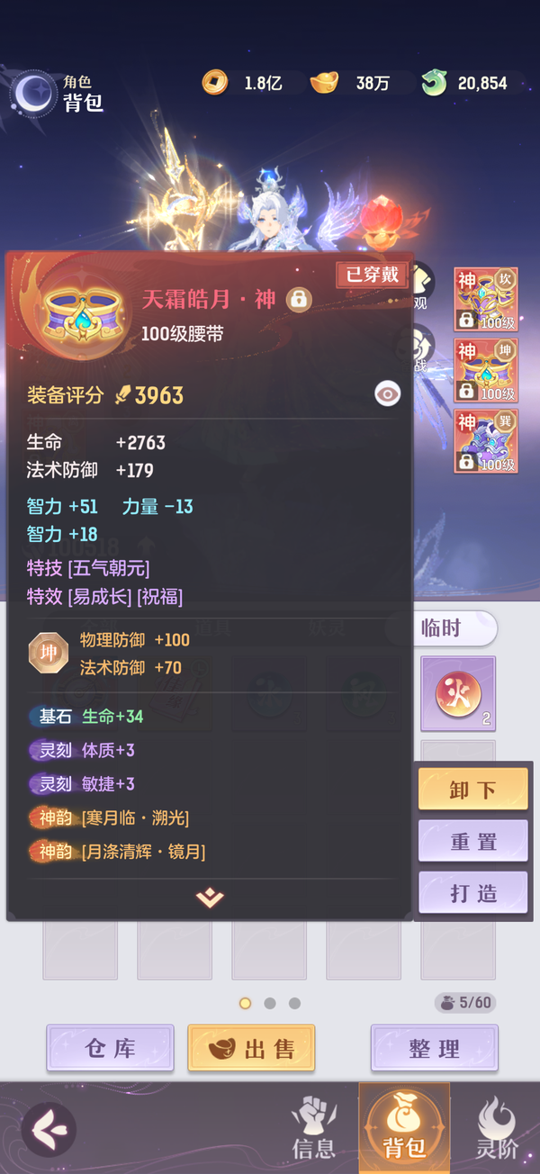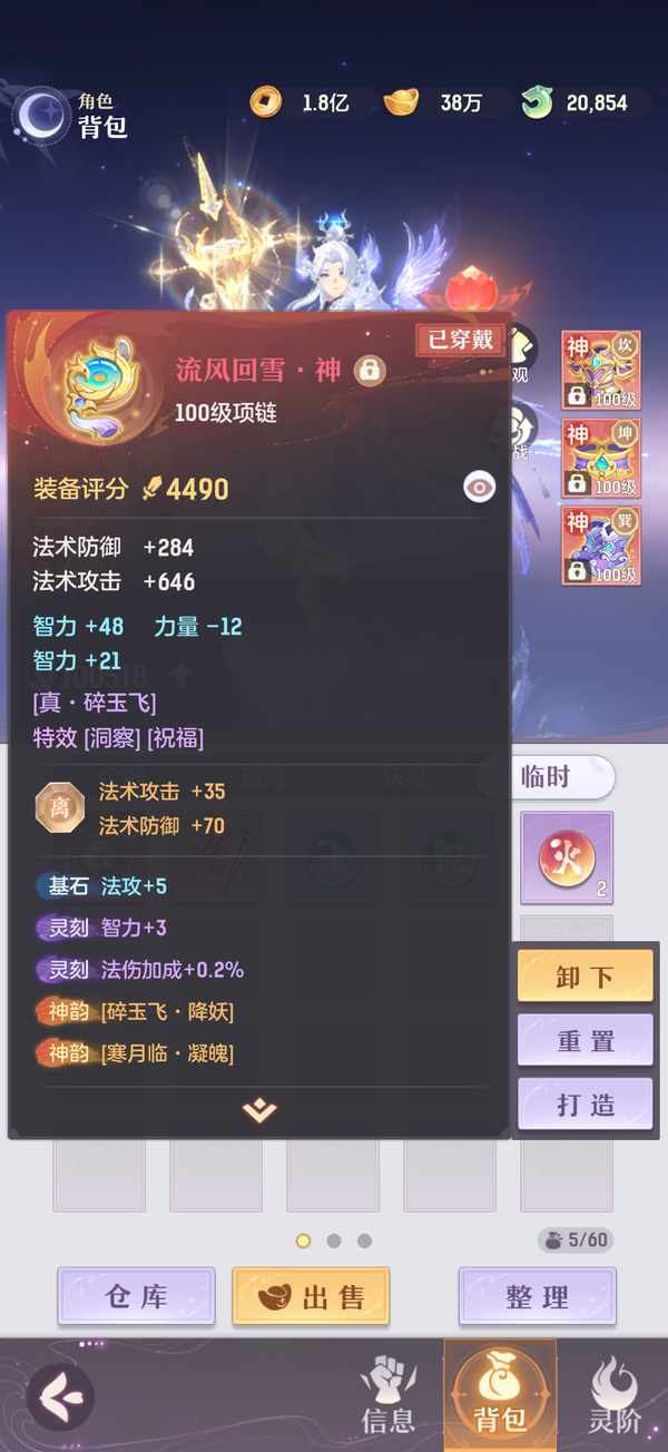 毕业双奢法,法伤洞察可6100+,极限法伤6300,多件毕业装备,两套宝石可高中低速度随便切换,灵宝18阶,天衍三绝,法宝毕业,魂玉超一线属性,一套无双法爆75智力一套无双猛击71智力,还有10块备用无双魂玉随时切换,宠物全部满丹满神韵5阶以上,宠物装备全特效,颜值区里排行15,有全套十巫外观,拍卖外观齐全,家园14级,还有2w活玉289通宝