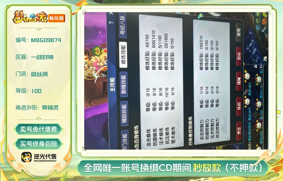 【MBG09874】 | 总经验:23664万 | 等级:100 | 盘丝洞 | 无换绑CD | 180天尊享特权 | 女 | 【逆光代售卖号0手续费】【买号找回永久包赔】