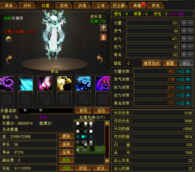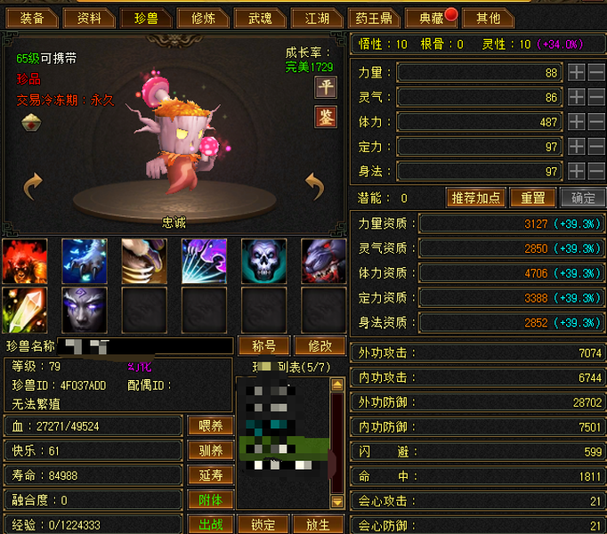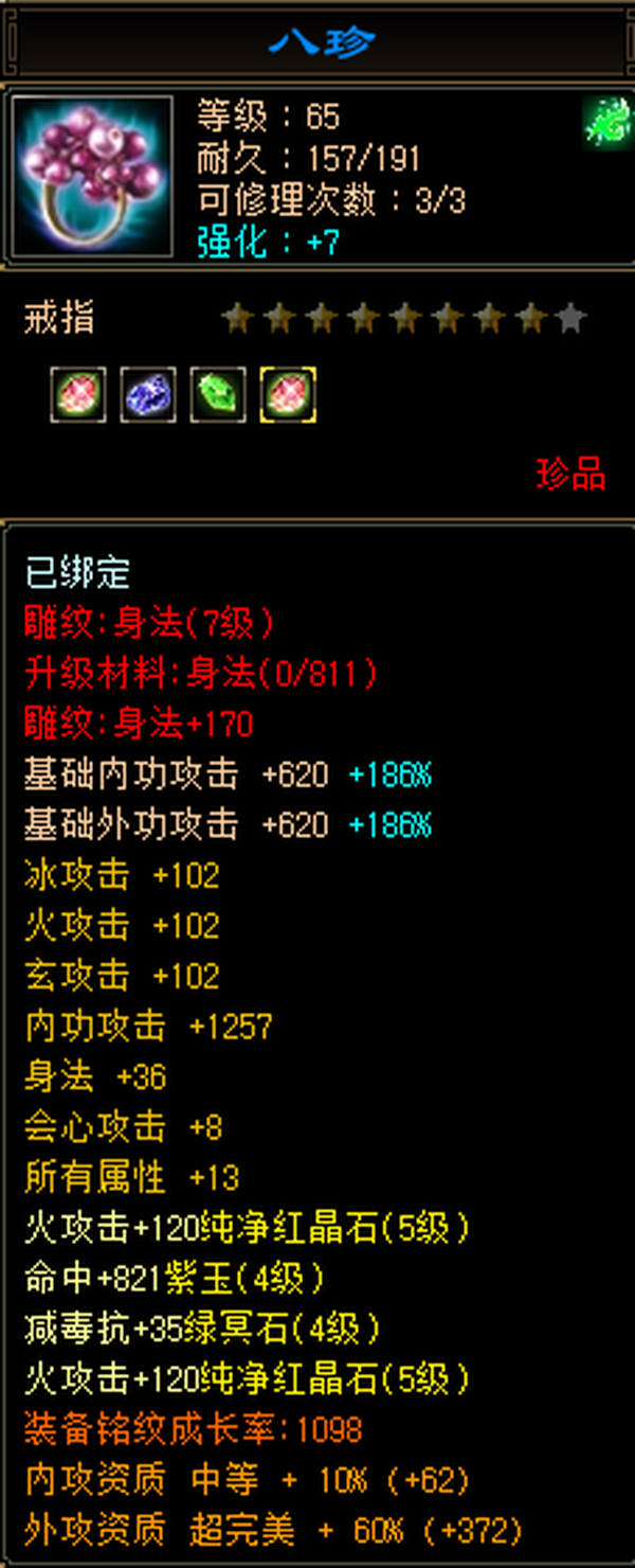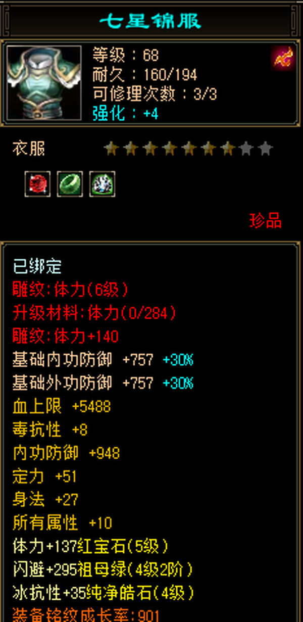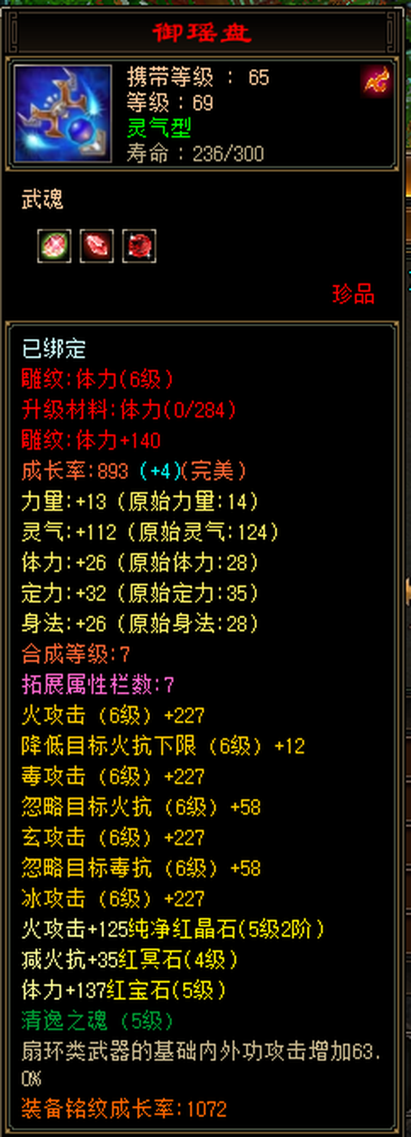 544 攻击件4孔已开,4套抗性石头,大完美武魂,装备基本毕业,