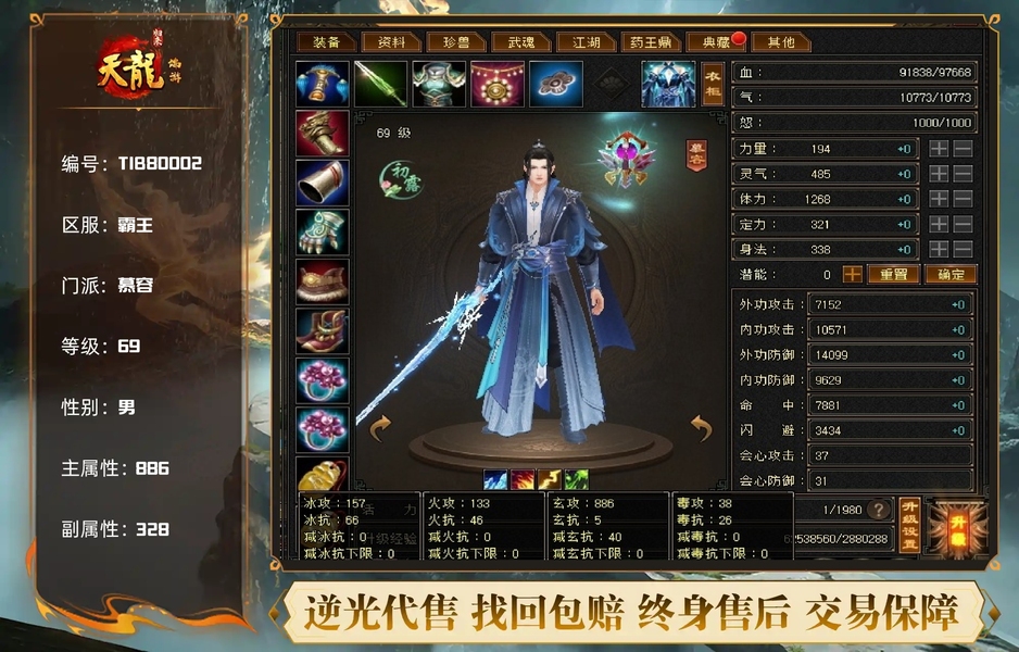【TIB80002】 | 慕容 | 等级:69 | 主属性:886 | 副属性:328 | 男 | 主玄攻