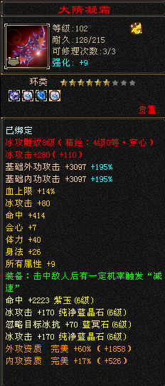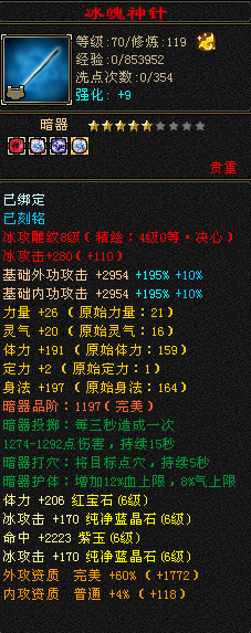 天山,等级 119,主冰攻,主属性 7000+,副属性 2500+,畅游账号,VIP6,极限3修6武当 天山,全身大八星细节手工。无敌丹,合适灵武。打不过的只有冰抗.可小刀屠龙刀别来.持续更新中一直在玩
