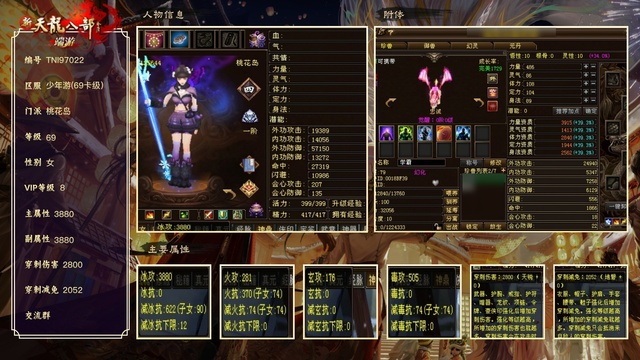 桃花岛 | 等级:69 | 主属性:3880 | 女 | 评分:12564 | 副属性:962 | 穿刺伤害:2800 | 穿刺减免:2052 | VIP8 | 【买号找回永久包赔】