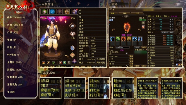 武当 | 等级:95 | 主属性:6575 | 男 | 评分:156348 | 副属性:2360 | 穿刺伤害:420 | 穿刺减免:244 | VIP9 | 【买号找回永久包赔】