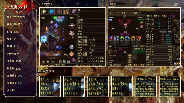 慕容 | 等级:95 | 主属性:3362 | 男 | 评分:47026 | 副属性:812 | 穿刺伤害:372 | 穿刺减免:156 | VIP9 | 【买号找回永久包赔】