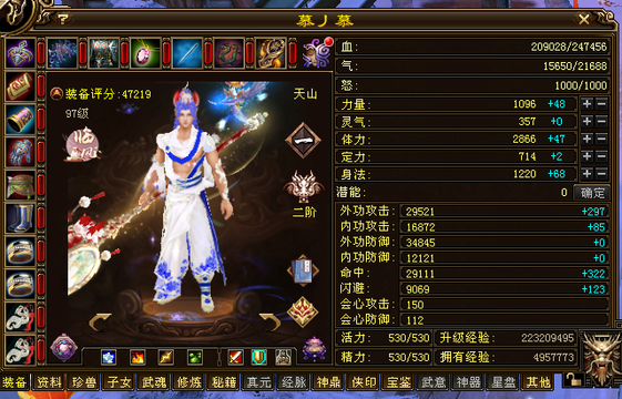 武当 | 等级:119 | 主属性:11658 | 女 | 评分:280402 | 副属性:3119 | 穿刺伤害:3897 | 穿刺减免:1876 | VIP9 | 【买号找回永久包赔】