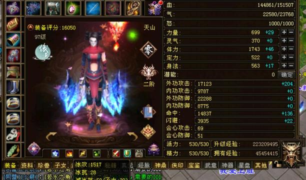 天山 | 等级:97 | 主属性:1517 | 女 | 评分:16050 | 副属性:500 | 穿刺伤害:48 | 穿刺减免:1 | VIP5 | 【买号找回永久包赔】