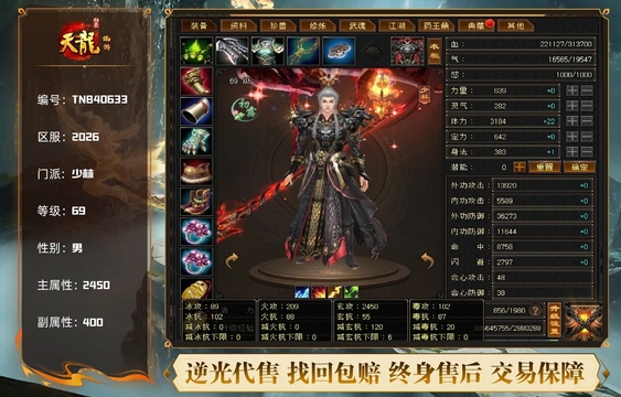 少林 | 等级:69 | 主属性:2450 | 副属性:400 | 男 | 主玄攻