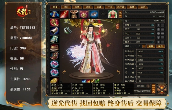 少林 | 等级:69 | 主属性:3245 | 副属性:1105 | 男 | 主玄攻