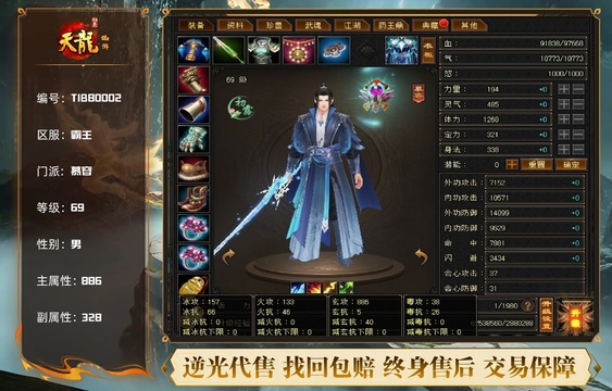 天龙,双排五级精品号。随缘卖,4个双10宝宝,主属性4700/副属性3600