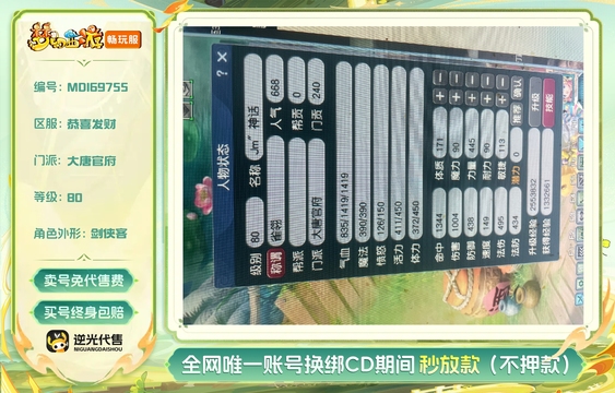 等级:80 | 大唐官府 | 无换绑CD | 180天尊享特权 | 男 | 【逆光代售卖号0手续费】【买号找回永久包赔】