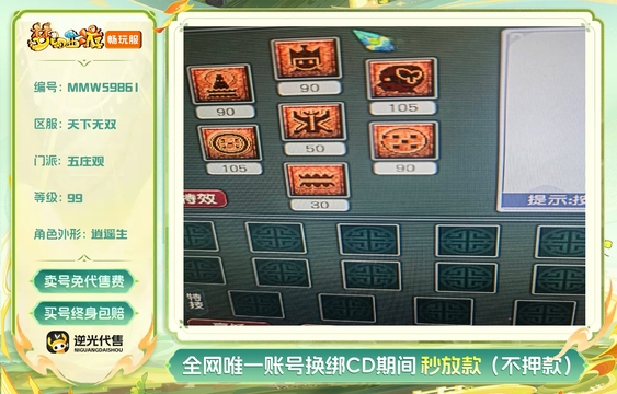 总经验:2.7万 | 等级:99 | 五庄观,普陀山 | 无换绑CD | 30天尊享特权 | 男 | 【逆光代售卖号0手续费】【买号找回永久包赔】