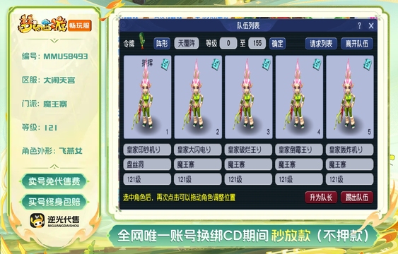 等级:121 | 盘丝洞,魔王寨 | 无换绑CD | 180天尊享特权 | 女 | 【逆光代售卖号0手续费】【买号找回永久包赔】