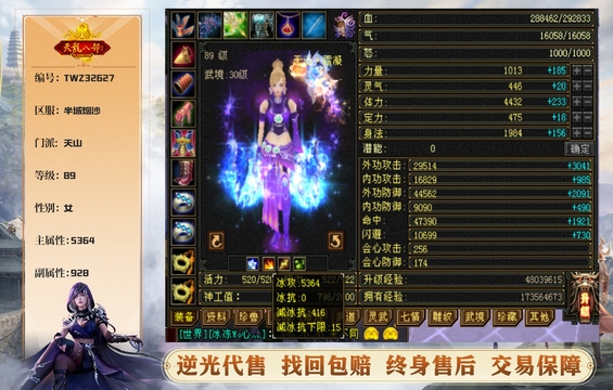 天山 | 等级:89 | 主属性:5364 | 副属性:928 | 女 | 主冰攻 | VIP5 | 畅游账号