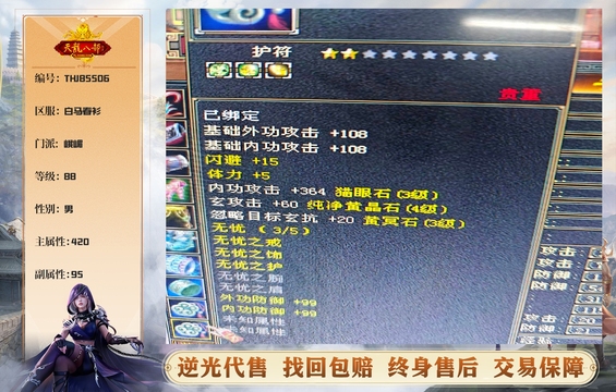 饰品石头6656 防具石头全部六级 装备差了点后期提升空间很大 带雪猿坐骑 没时间玩了 带所有