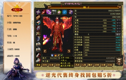 【TIF91189】 | 主属性:5800 | 副属性:1600 | 等级:119 | qq账号 | 明教 | 主火攻 | VIP0 | 男 【逆光终身包赔五折】