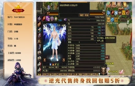 【TAY30531】 | 主属性:6300 | 副属性:1200 | 等级:119 | 畅游账号 | 少林 | 男 | 主玄攻 | VIP6 【逆光终身包赔五折】