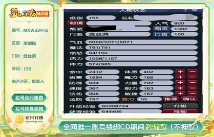 【MXW32416】 | 等级:155 | 总经验:21万 | 网易邮箱 | 180天尊享特权 | 女 | 盘丝洞 | 天覆阵【逆光代售卖号0手续费】【买号找回永久包赔】