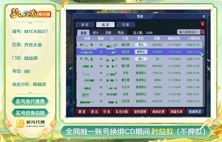 【MTC43627】 | 等级:89 | 总经验:23435万 | 网易邮箱 | 超级绿通 | 盘丝洞 | 地载阵 | 粉驴、彩驴、灰驴【逆光代售卖号0手续费】【买号找回永久包赔】