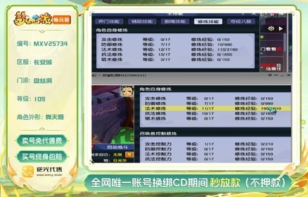 【MXV25734】 | 等级:109 | 180天尊享特权 | 网易邮箱 | 女 | 盘丝洞、普陀山 | 天覆阵【逆光代售卖号0手续费】【买号找回永久包赔】