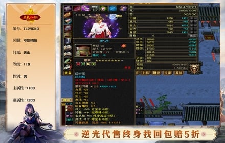 【TLBBHJF3478051】 | 主属性:6037 | 副属性:1200 | 等级:119 | VIP6 | 主玄攻 | 男 | 畅游账号 | 少林 【逆光终身包赔五折】