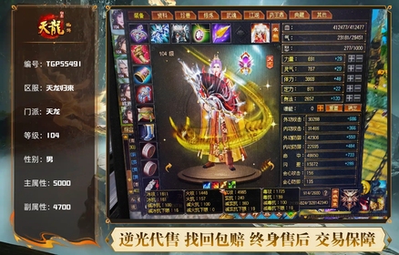 【TGP55491】 | 天龙 | 等级:104 | 主属性:5000 | 副属性:4700 | 男 | 主玄攻