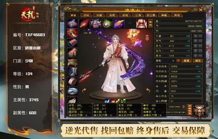 【TXF46683】 | 少林 | 等级:104 | 主属性:3745 | 副属性:600 | 男 | 主玄攻