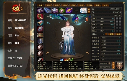 【TFV81405】 | 武当 | 等级:103 | 主属性:3952 | 副属性:2163 | 女 | 主玄攻