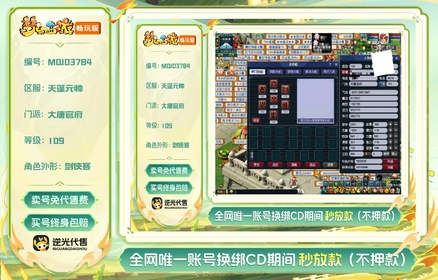 【MOJ03784】 | 总经验:45000万 | 等级:109 | 大唐官府 | 无换绑CD | 180天尊享特权 | 男 | 【逆光代售卖号0手续费】【买号找回永久包赔】