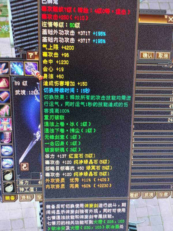 高会高属性,极品装备,暴击都溢出屏幕了。现在是输出时代,面板是附体状态,没有宝宝。