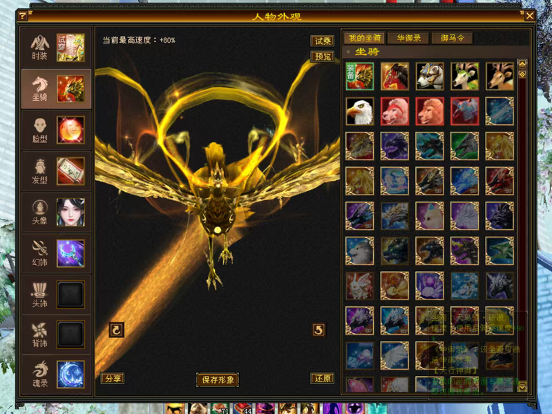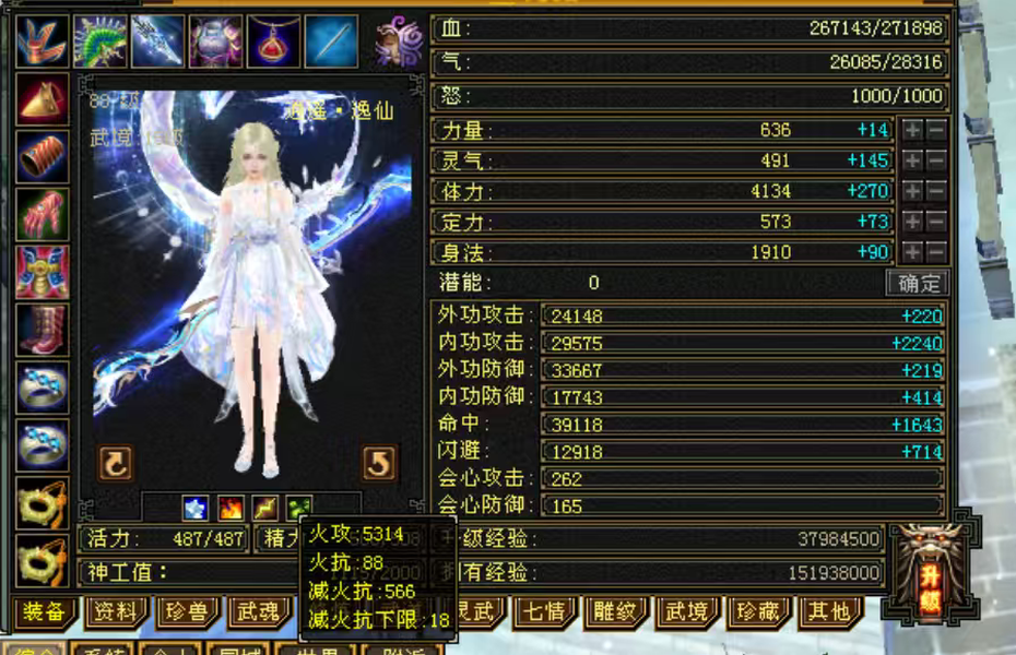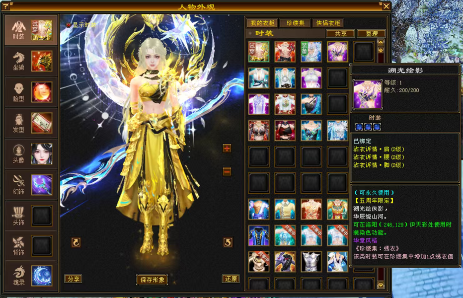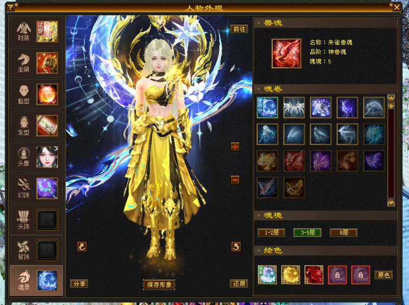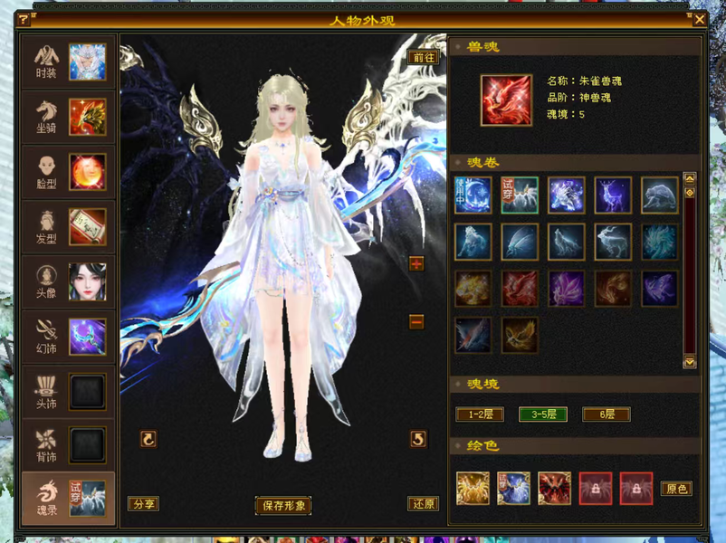 5级花瓶女逍遥号,5神兽魂,三稀有骨翼,三稀有衔月,5周年坐骑,赤兔马坐骑,5周年时装,金箍棒,金甲等幻视多多,时装多多,挖矿10采药9制药9,漂亮可打可生活,没有附体。